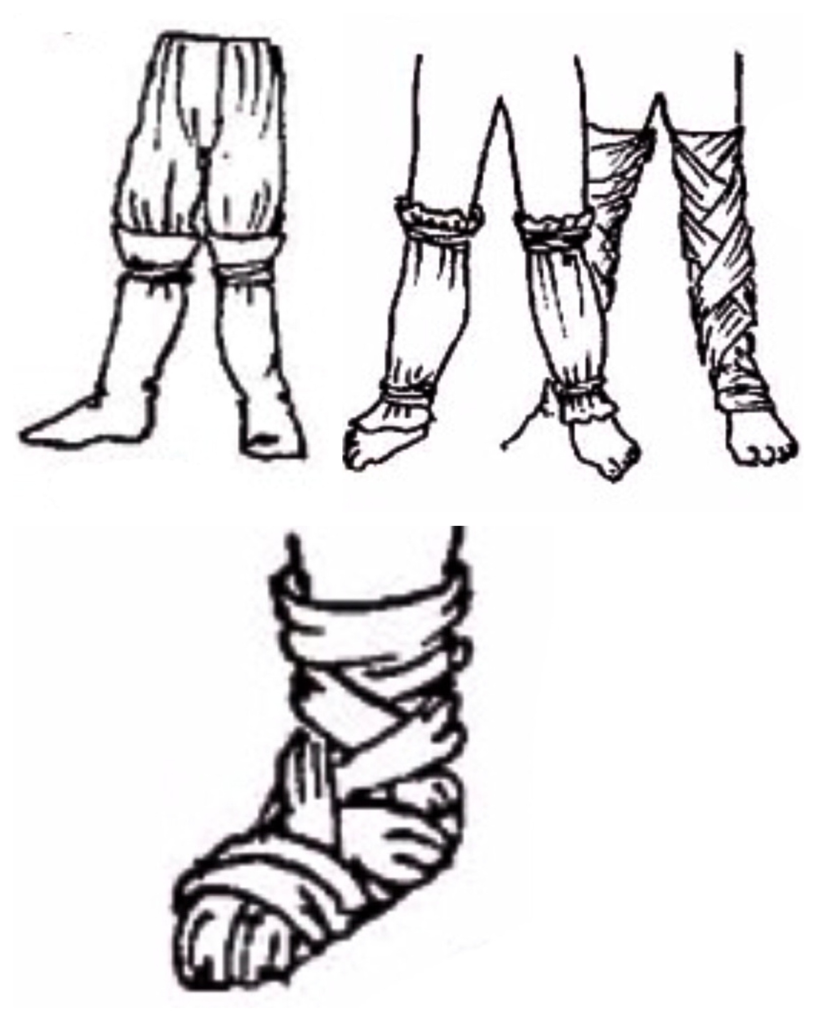 Di solito la sotto-tunica o camicia, era di lino, con maniche lunghe aderenti e polsini decorati con ricami geometrici di un colore vivace. Questa era utilizzata come indumento intimo insieme a delle strette brache in lino o in lana che arrivavano fino al ginocchio. Il guardaroba intimo maschile comprendeva anche le calze e i calzini solitamente in lino o in lana, ma la differenza delle fogge era minima fra i popoli europei.