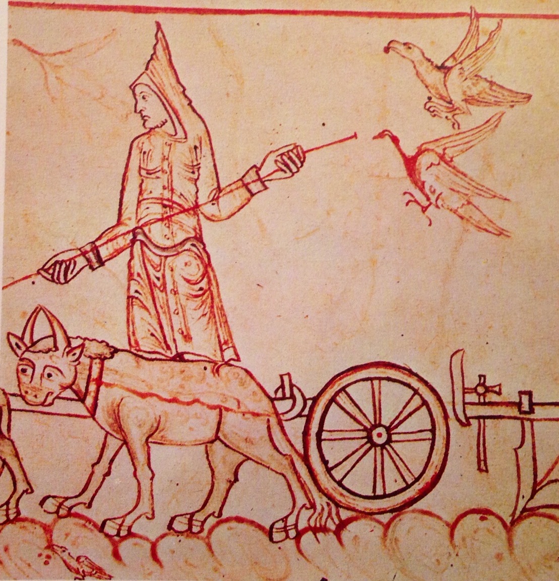 I copricapi nel XI secolo erano molto diffusi e tra questi si trovava una semplice cuffia molto aderente che copriva le orecchie e veniva allacciata sotto il mento, questa cuffia più che un vero e proprio cappello, era una sciarpa modellata sulla testa in modo da tenere a posto le chiome quando tirava il vento.