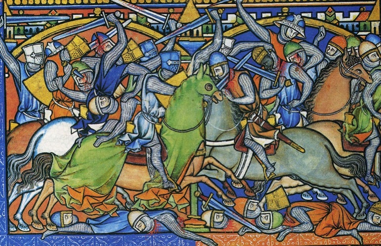 I cavalieri indossavano camicie di lino e brache come sottovesti e calze di lana. Oltre agli indumenti intimi, i cavalieri indossavano tuniche pesanti di lana per proteggere la pelle dal logoramento causato dalle maglie dell’armatura. Queste cotte di maglia erano pesanti e spesso composte da oltre 200.000 anelli. L’armatura di un cavaliere era completata così da una veste fermata in vita da una cintura di pelle. Indossavano sopravvesti adornate come la tunica del re di armi in modo tale che i cavalieri fossero facilmente identificati durante i combattimenti. Una cuffia in lana foderata proteggeva il capo dall’elmo.