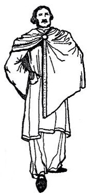 Il mantello era invece un indumento principalmente appartenente ai nobili, che poteva essere di varie fogge. La più diffusa era a ruota, di mezza lunghezza e senza maniche. In genere era di tessuto pesante foderato di pelliccia, ricamato; aveva un apertura laterale e si chiudeva sulla spalla destra per mezzo di un fermaglio o di un legaccio. La pelliccia proveniva dalla cacciagione locale, tra i nobili, la più ricercata era quella di scoiattolo.