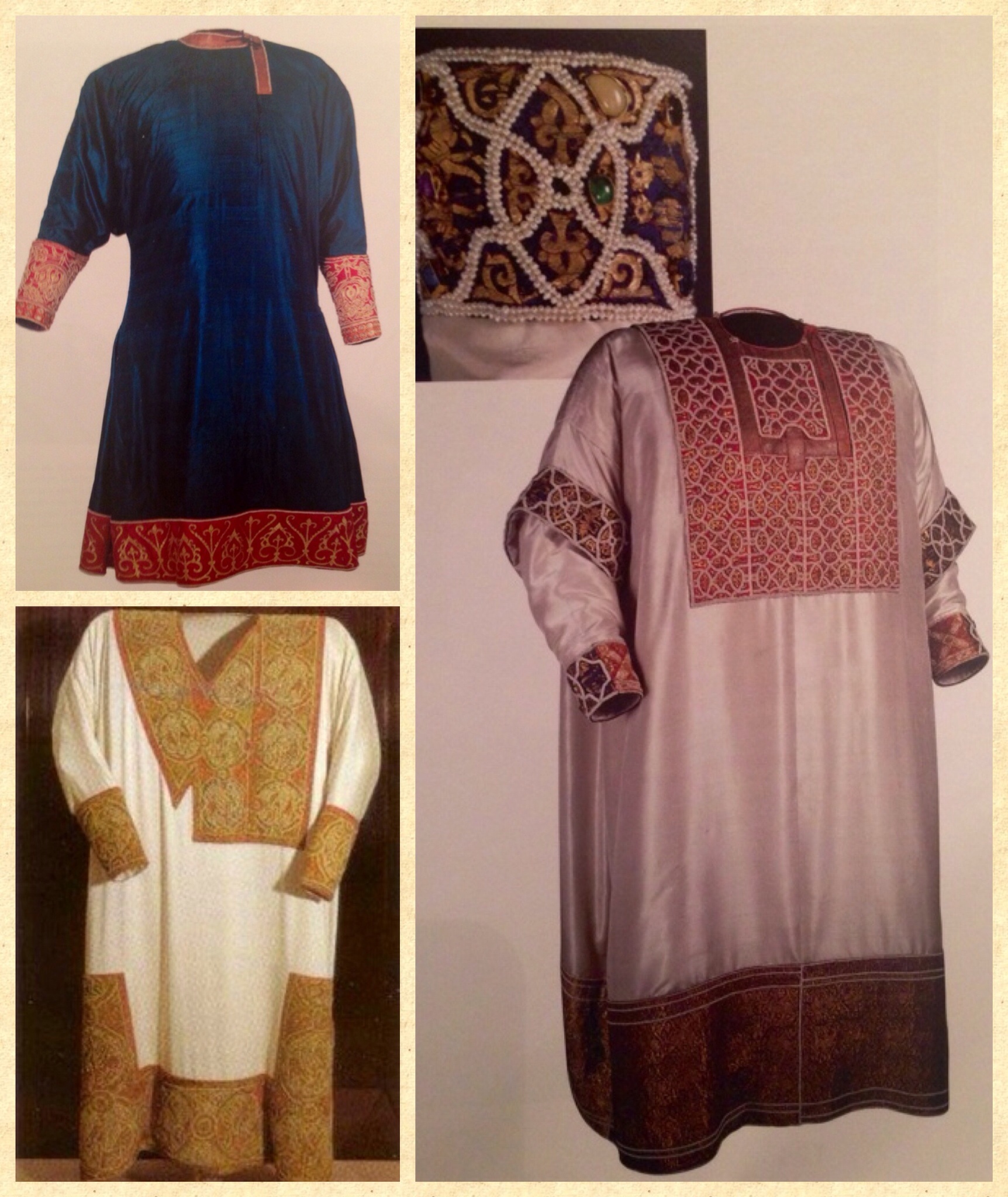 Quando l’Italia settentrionale si allargava a nuovi stili, la Sicilia risentiva ancora gli influssi della moda bizantina amalgamandola alla nuova ed importante sartoria italiana della seta; nella Chiesa di Santa Maria dell’Ammiraglio, detta Martorana, a Palermo, si possono trovare immagini dell’incoronazione di Ruggero II (1095 – 1154), il quale indossa una veste cerimoniale bizantina in broccato di seta, su alba di lino misto seta, oro e perle.