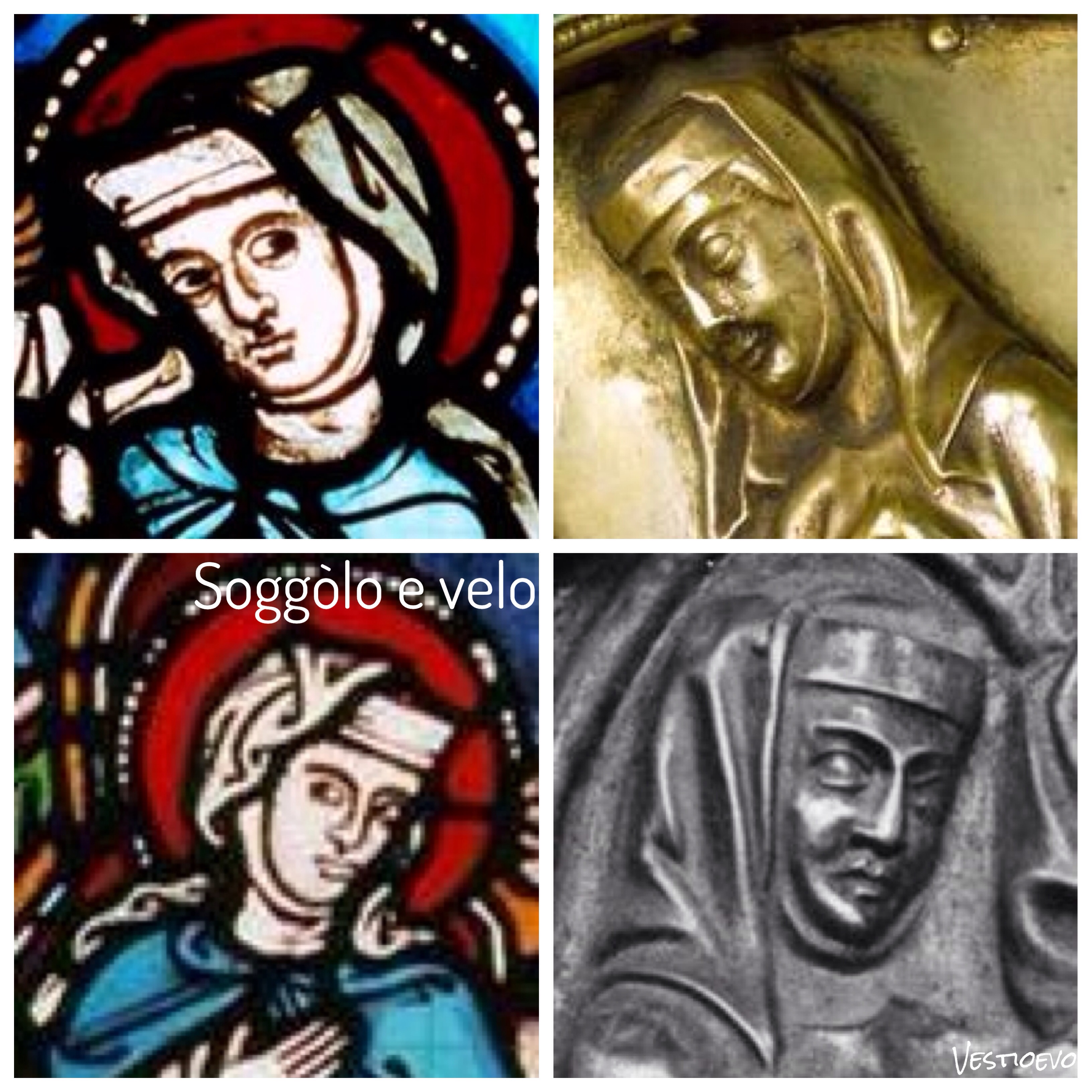 Il copricapo maggiormente diffuso era il soggòlo, che poteva essere indossato sia singolarmente, sia con un velo appoggiato sopra alla parte superiore; contemporaneamente anche il singolo velo appoggiato alla testa o fissato con un cerchietto o facendolo passare sotto al mento, rimaneva un copricapo parecchio usato dalle donne sposate.