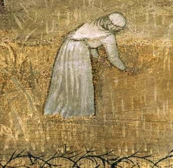 Nel ciclo di affreschi “Allegoria del Buono e del Cattivo Governo e loro Effetti in Città e in Campagna” di Ambrogio Lorenzetti, datati tra il 1338/39, le donne nei campi erano rappresentate in camicia.