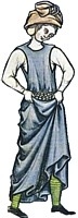 Immagine tratta da “A History of Fashion” di J. Anderson Black, Madge Garland, Frances Kennett, Orbis 1980Il “surcot” (comunemente chiamato) o guarnacca era in genere chiuso ai lati, creando un’ampia apertura sotto l’ascella; tra i ceti più bassi si trovava più corto della veste. Queste aperture ascellari erano, per la Chiesa, una fonte di peccato in quanto i religiosi vedono l’espressione di un desiderio femminile di libertà e provocavano pensieri viziosi nella mente maschile; deplorarono i nuovi tagli definendoli “le finestre dell’inferno” o “le finestre del diavolo”.
