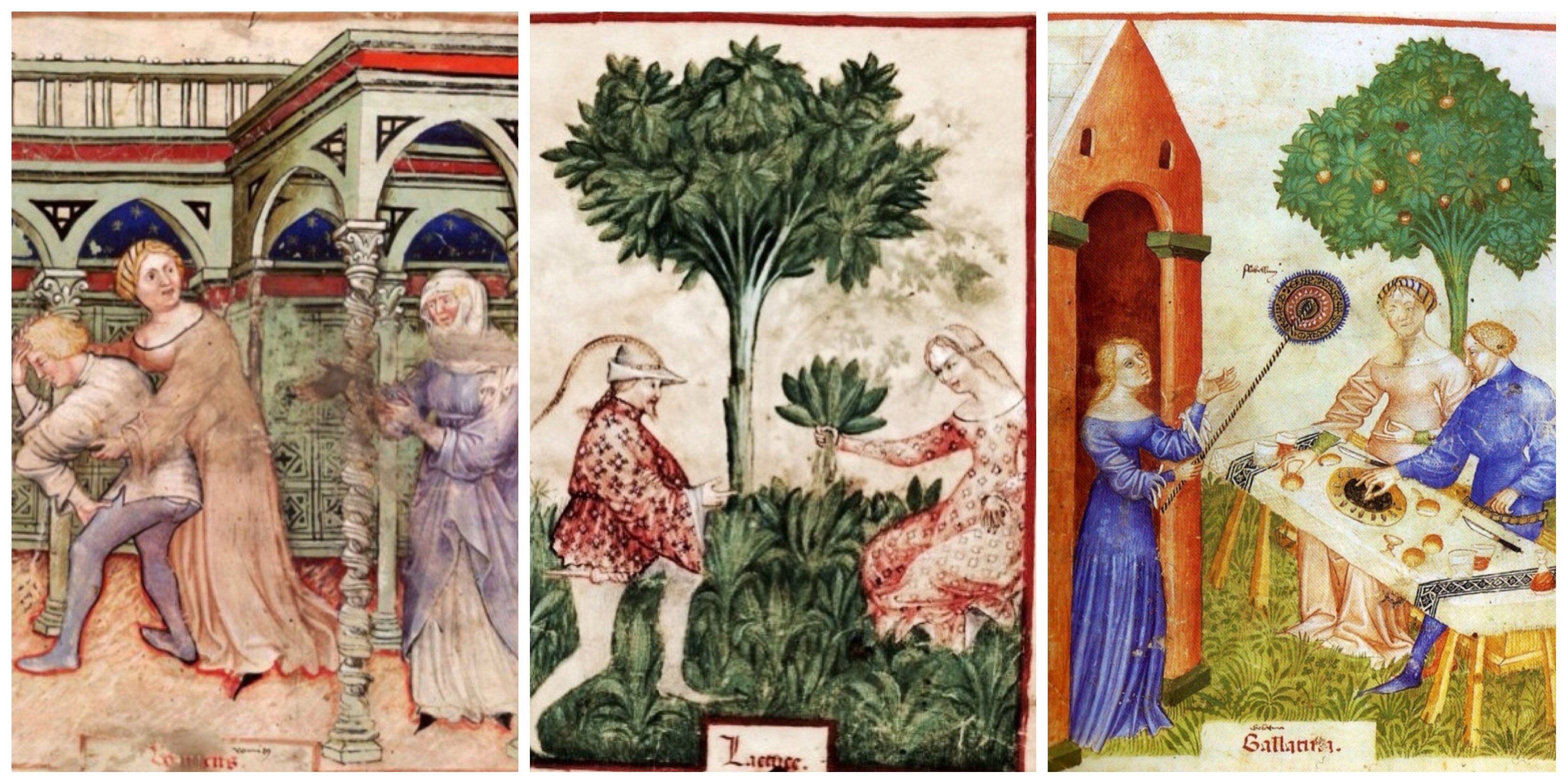A sinistra. Particolare di “Jason and Medea”, tratto dall’opera siciliana del poeta Guido delle Colonne, 1445Al centro. Particolare, Museo d’Arte di Braunschweig, Germania, 1420