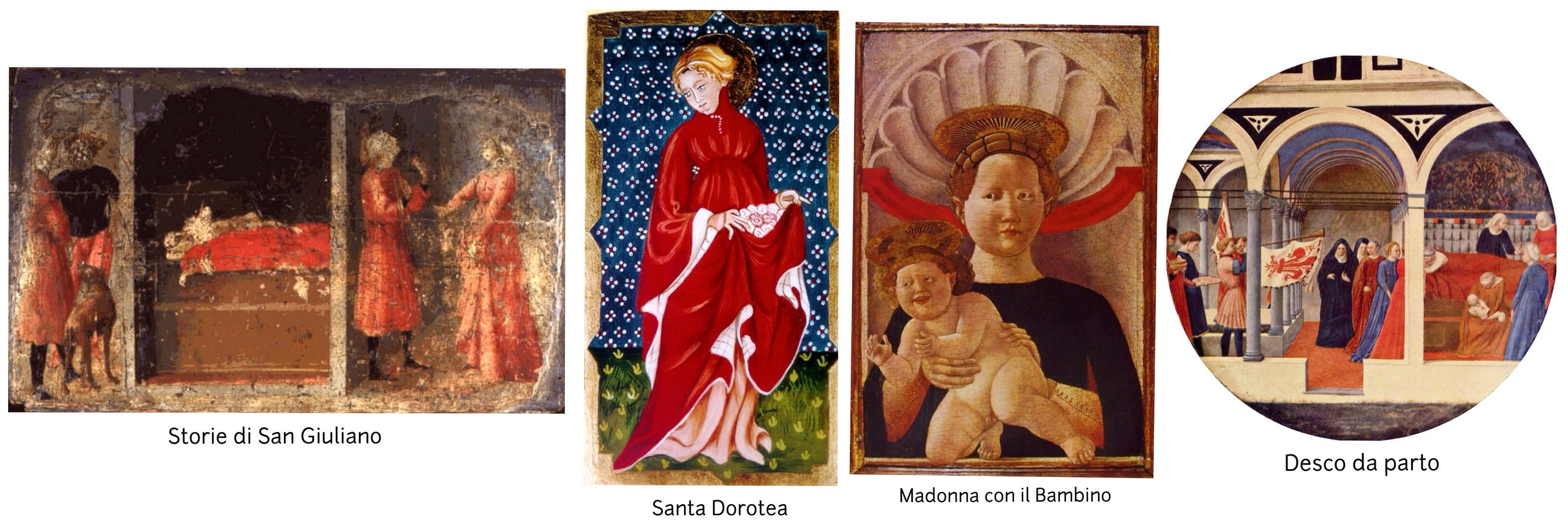 Nel “Corteo nuziale” di Giovanni di Ser Giovanni detto Scheggia databile al 1450 è conservato alla Galleria dell’Accademia di Firenze le donne indossano giornee di diverso tipo, semplici o con decorazioni dorate e un visibile strascico, una decina d’anni dopo si trova nel ritratto della donna del 1450 di Piero della Francesca.