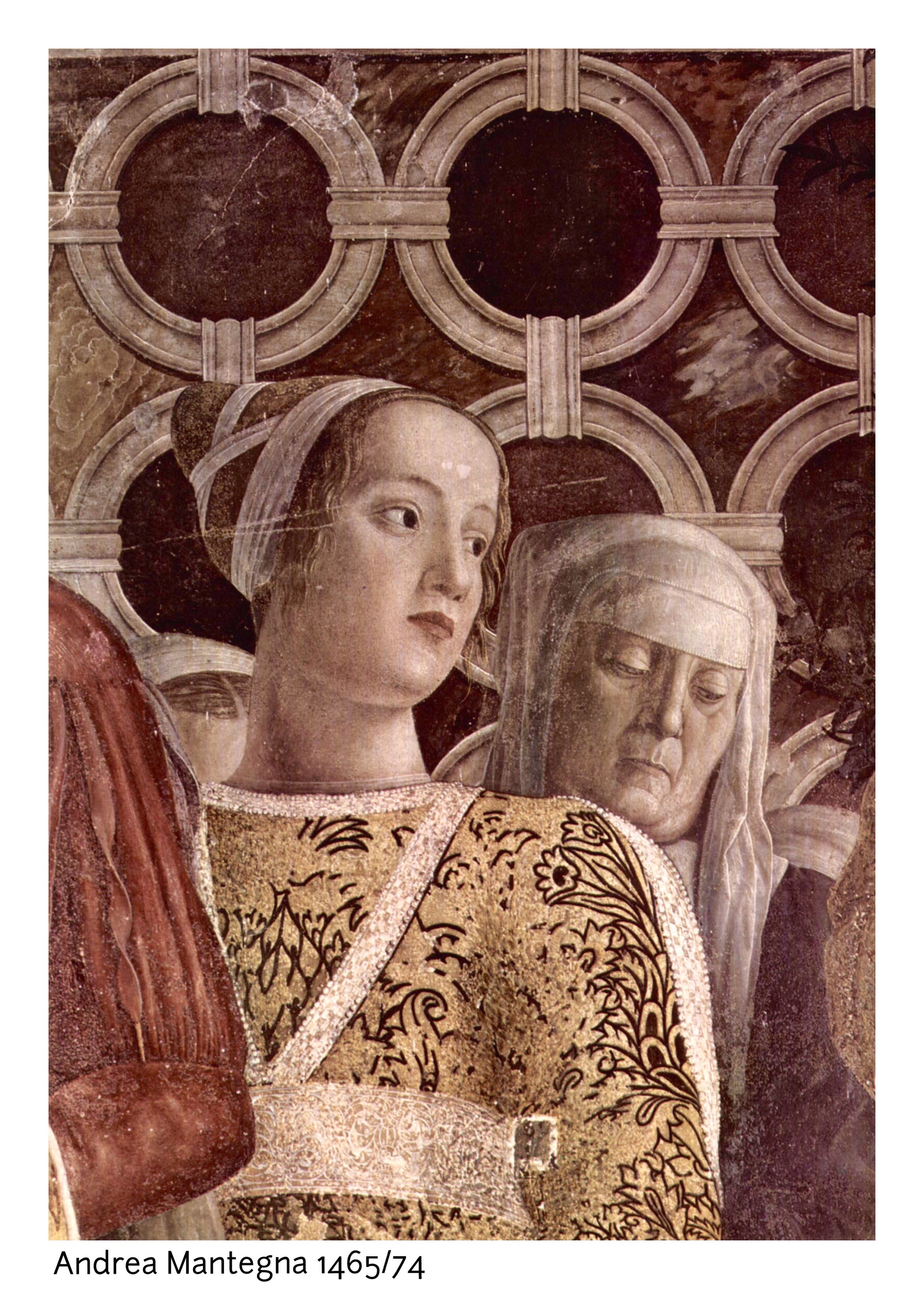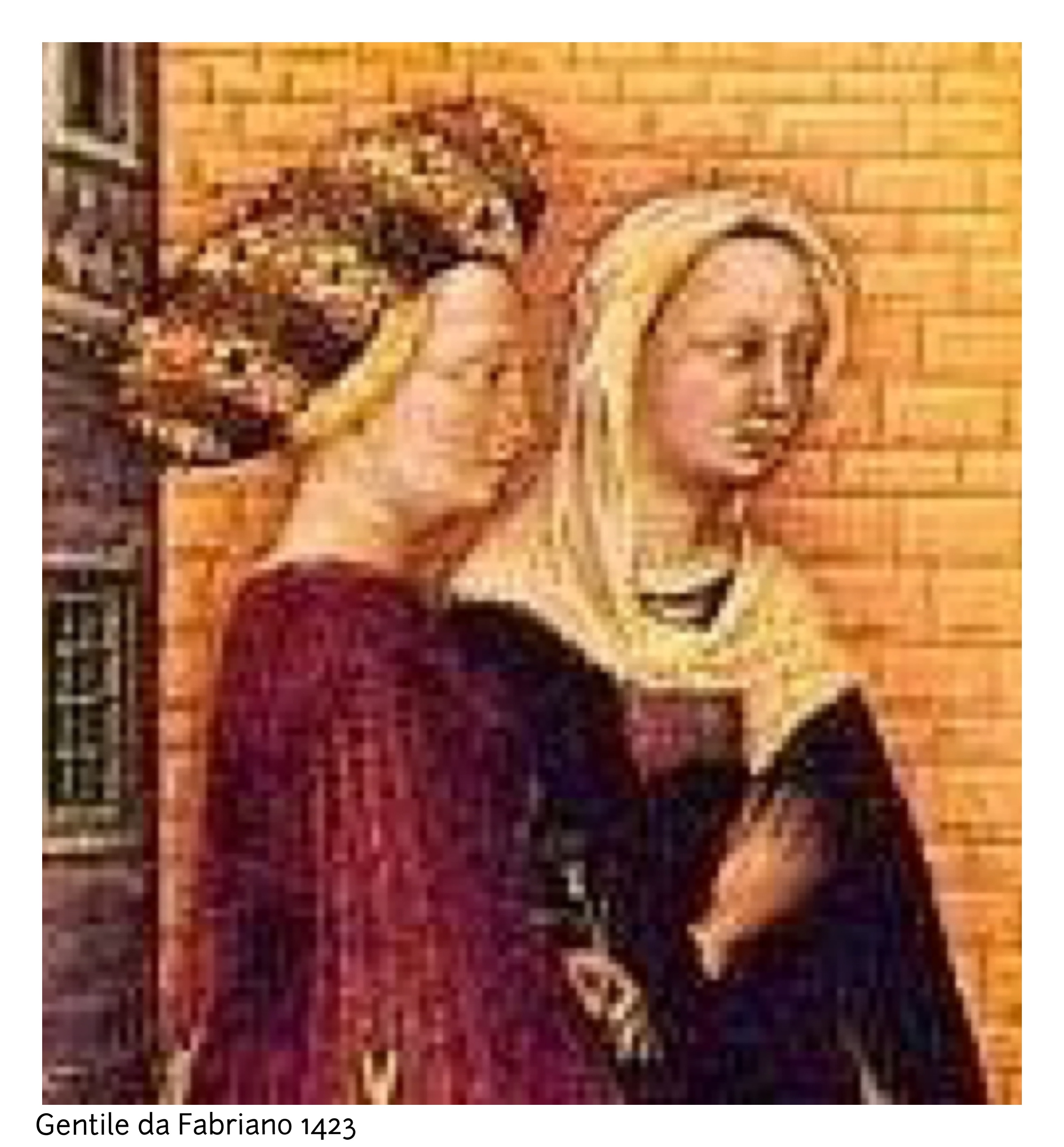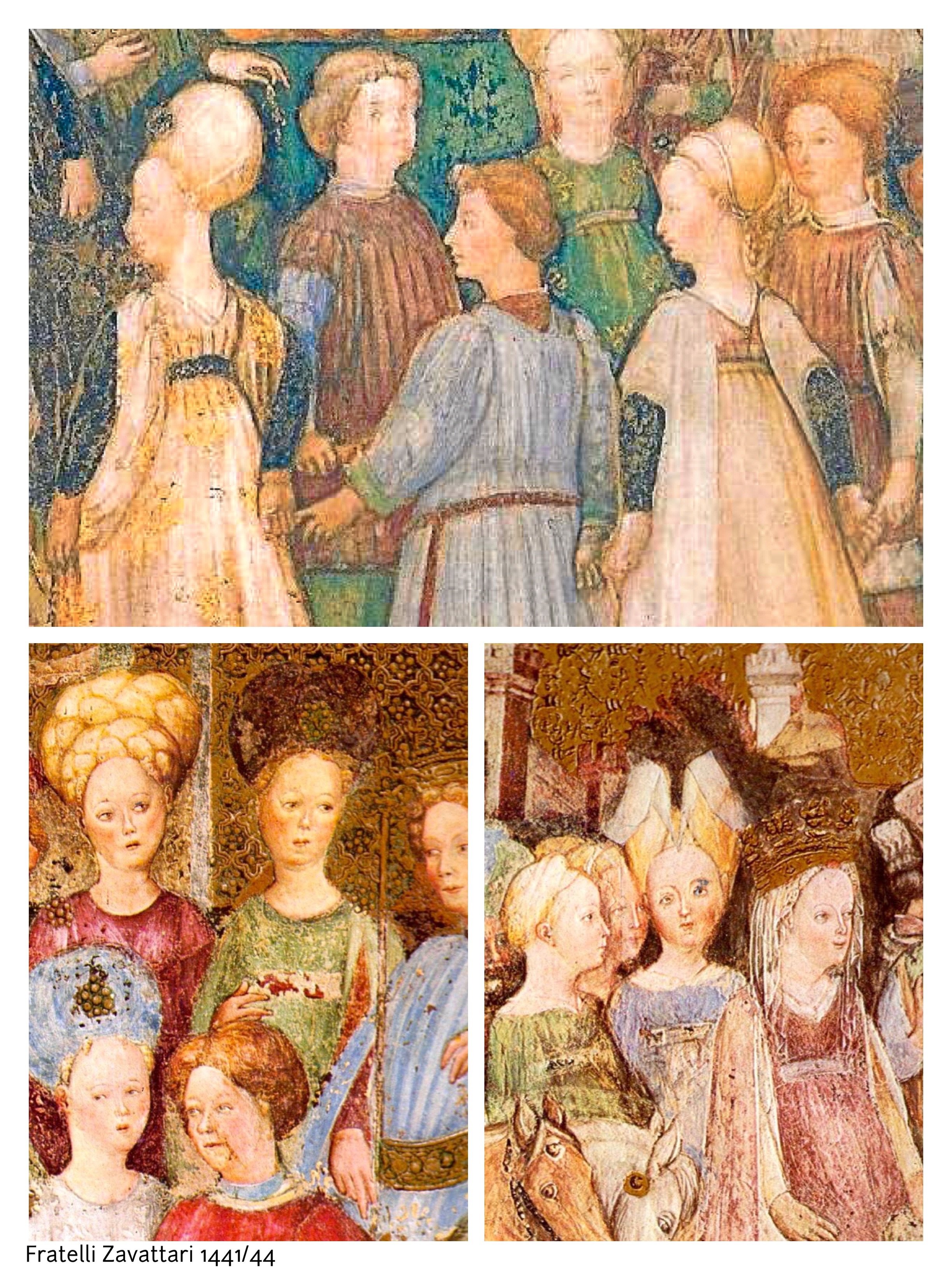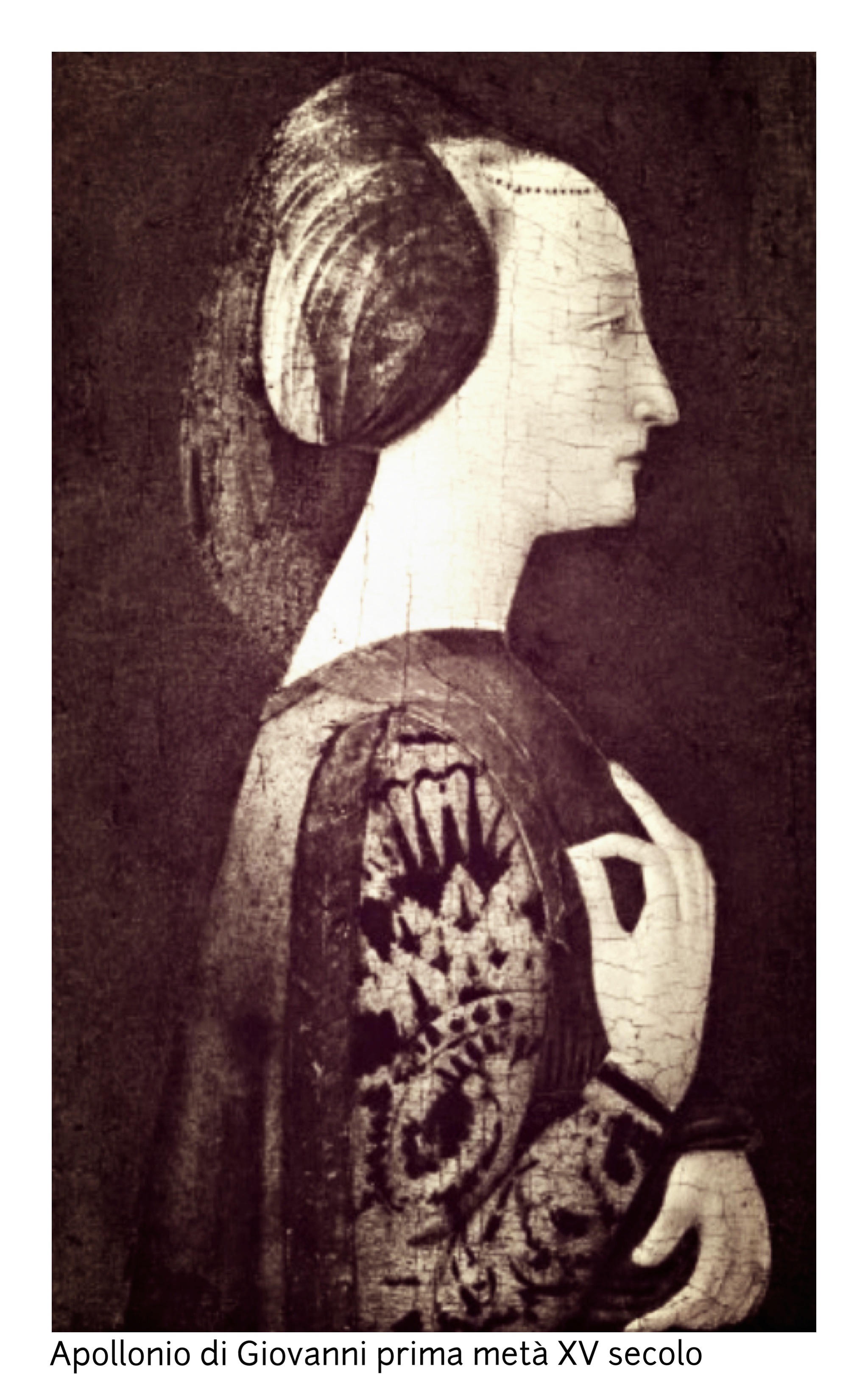 Le donne del XV secolo facevano della loro testa una “portavoce” di ricchezza; grazie ad un sistema di ornamenti, i cui materiali, colori e forme erano codificati nella normativa suntuaria, il capo femminile era simbolo di eleganza e femminilità.