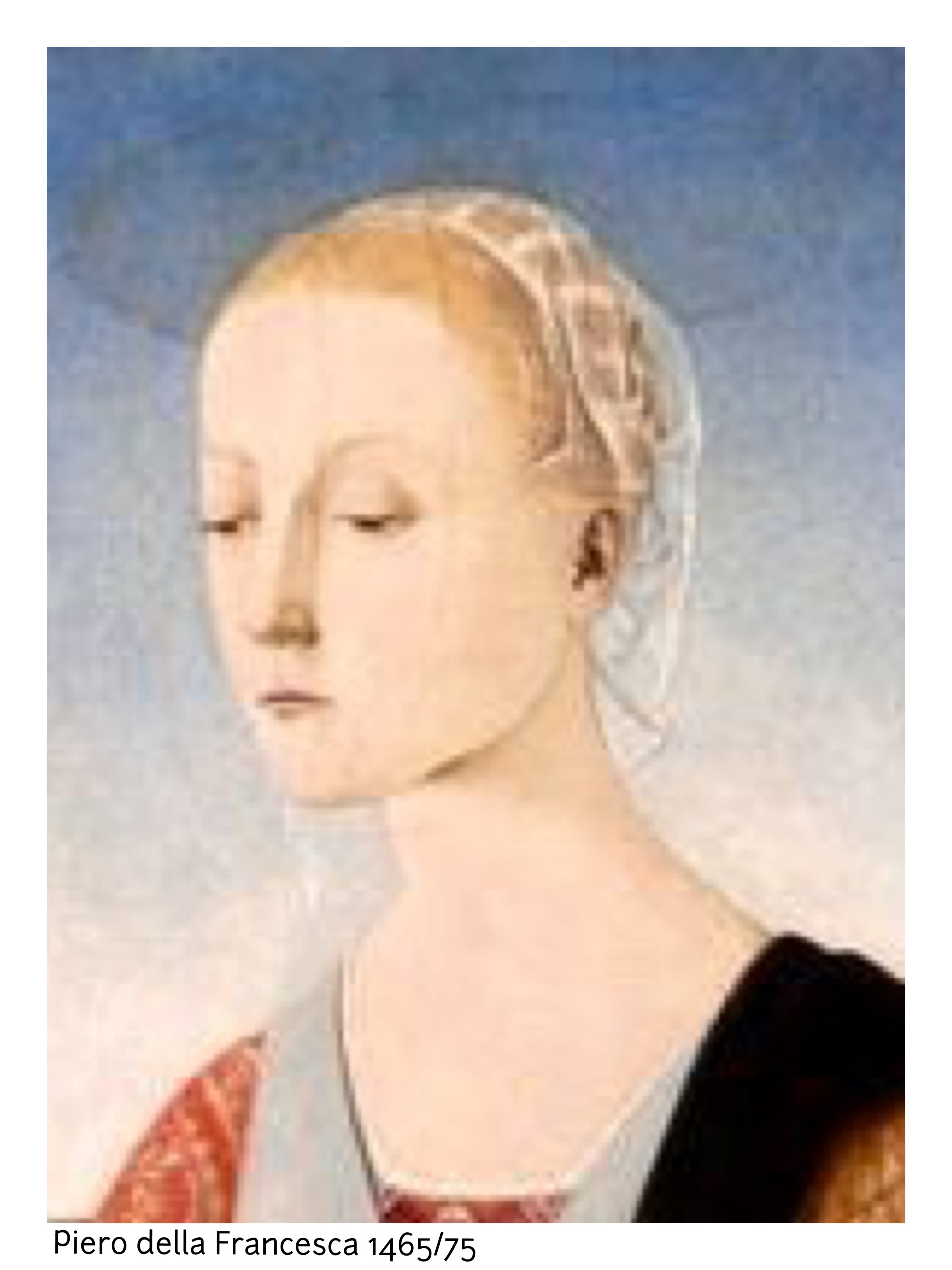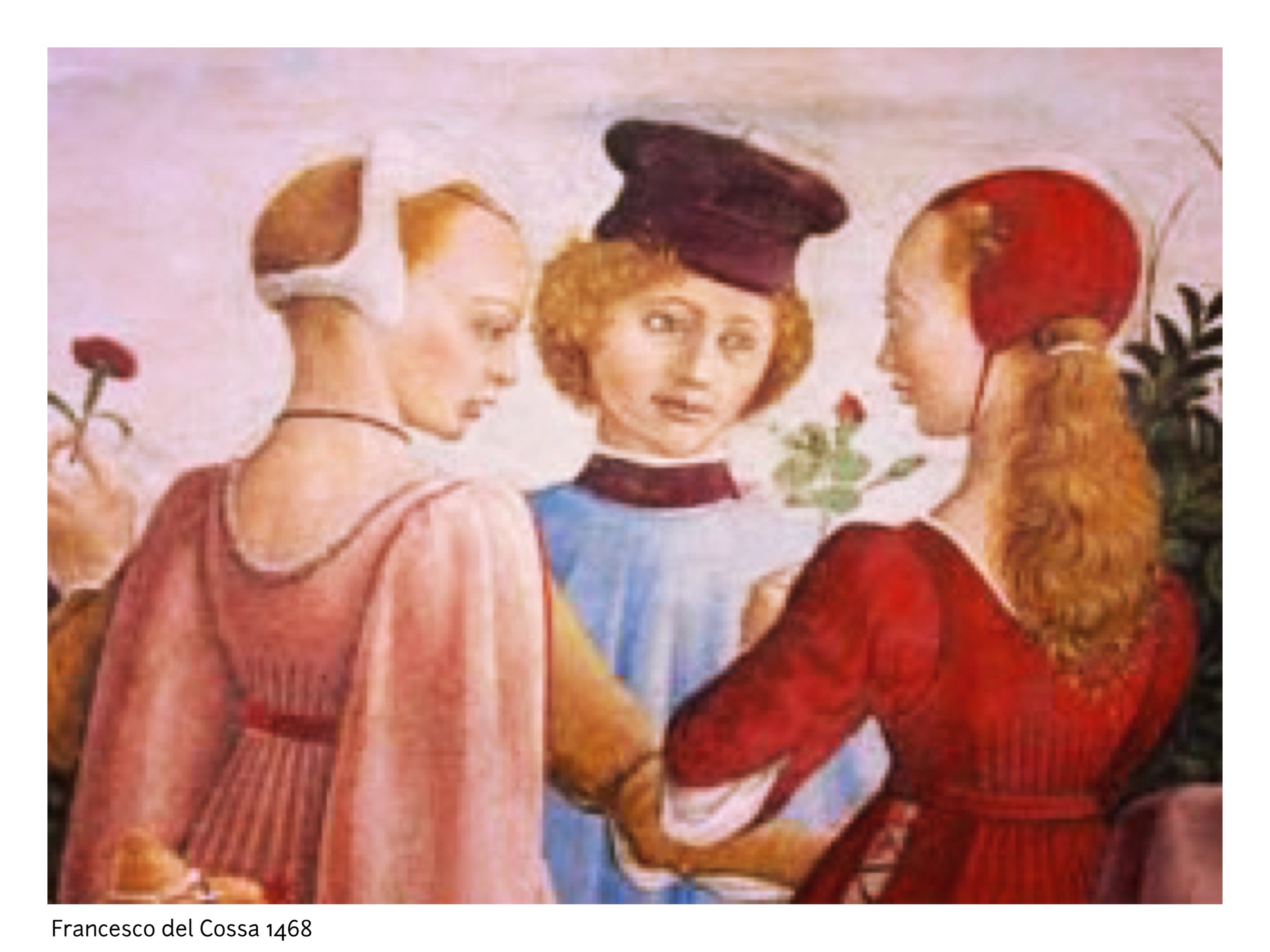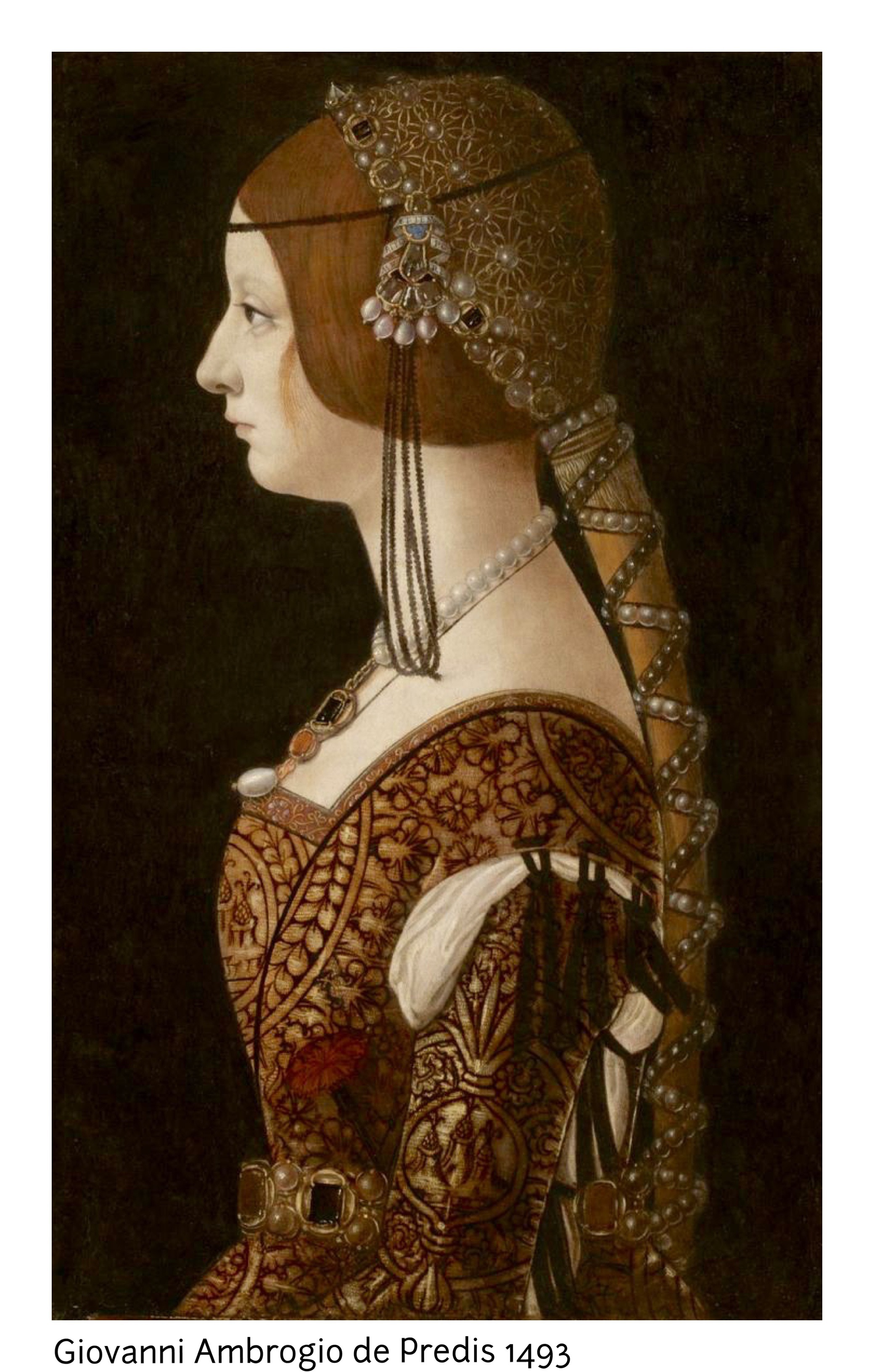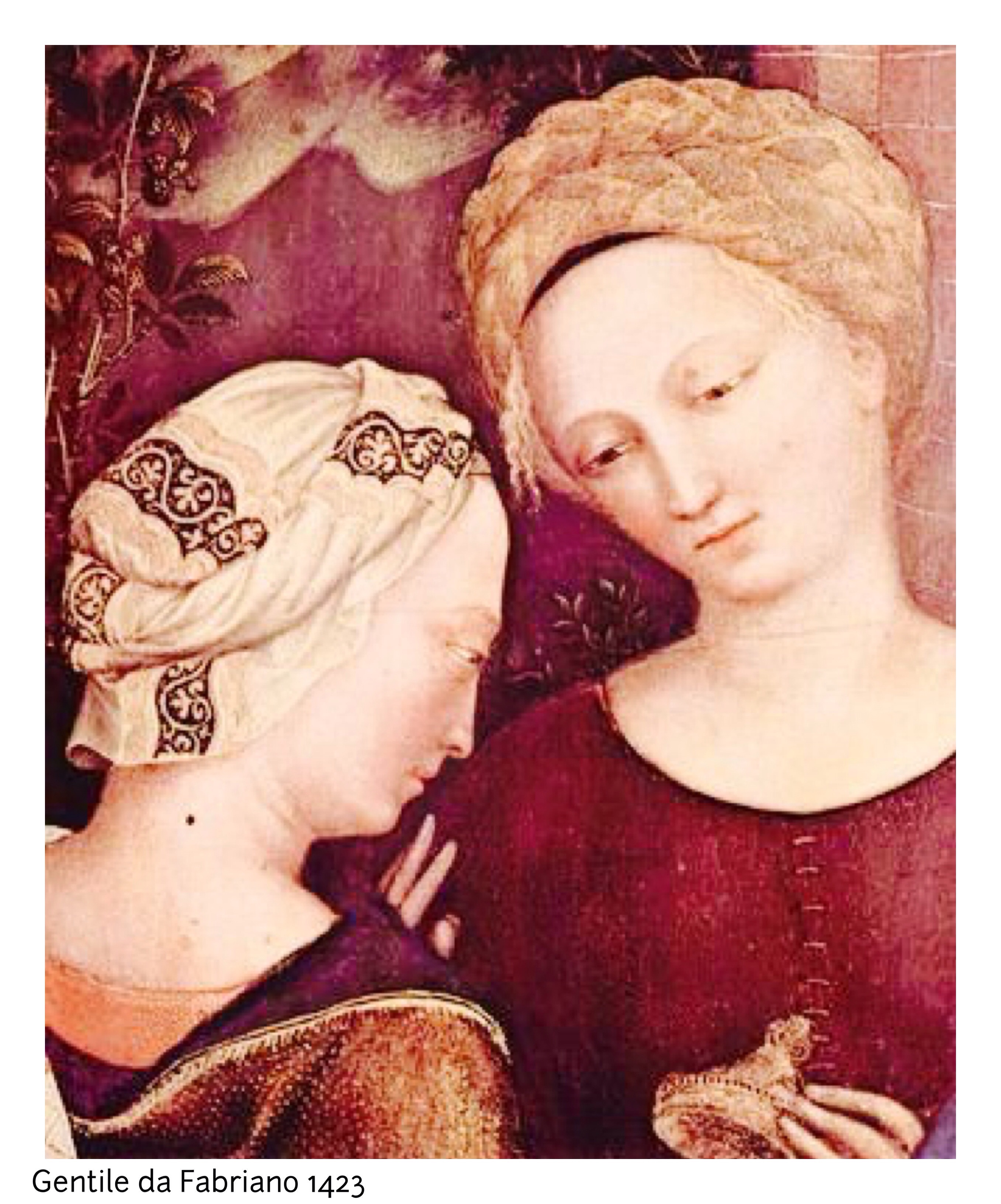 Le donne del XV secolo facevano della loro testa una “portavoce” di ricchezza; grazie ad un sistema di ornamenti, i cui materiali, colori e forme erano codificati nella normativa suntuaria, il capo femminile era simbolo di eleganza e femminilità.