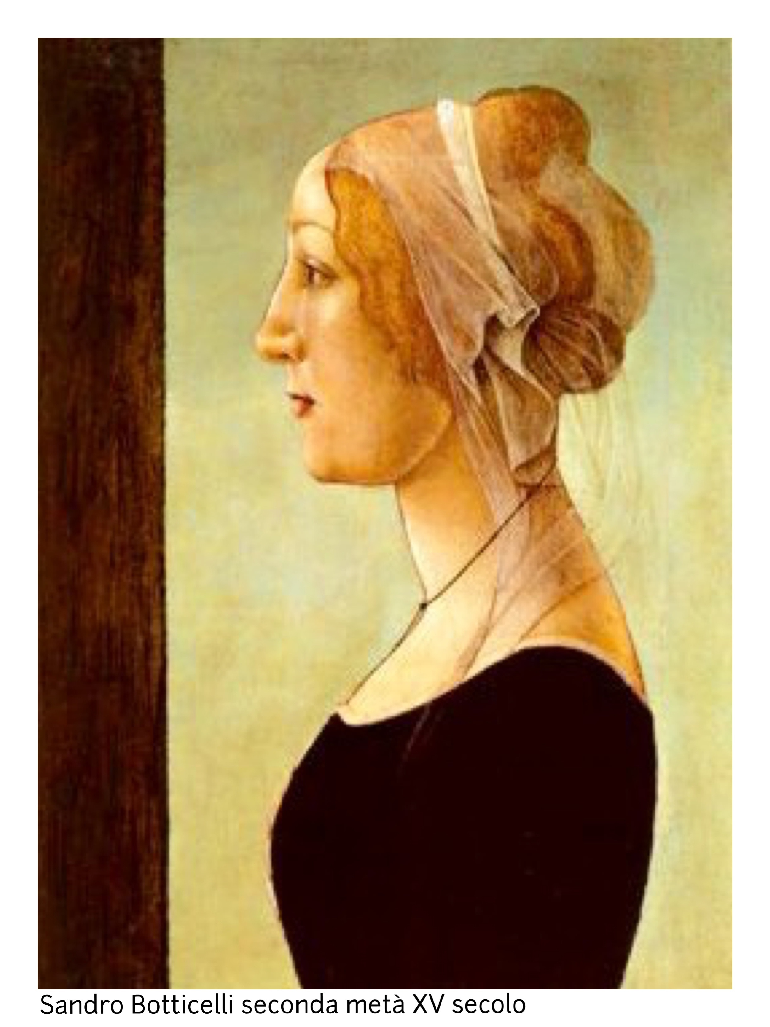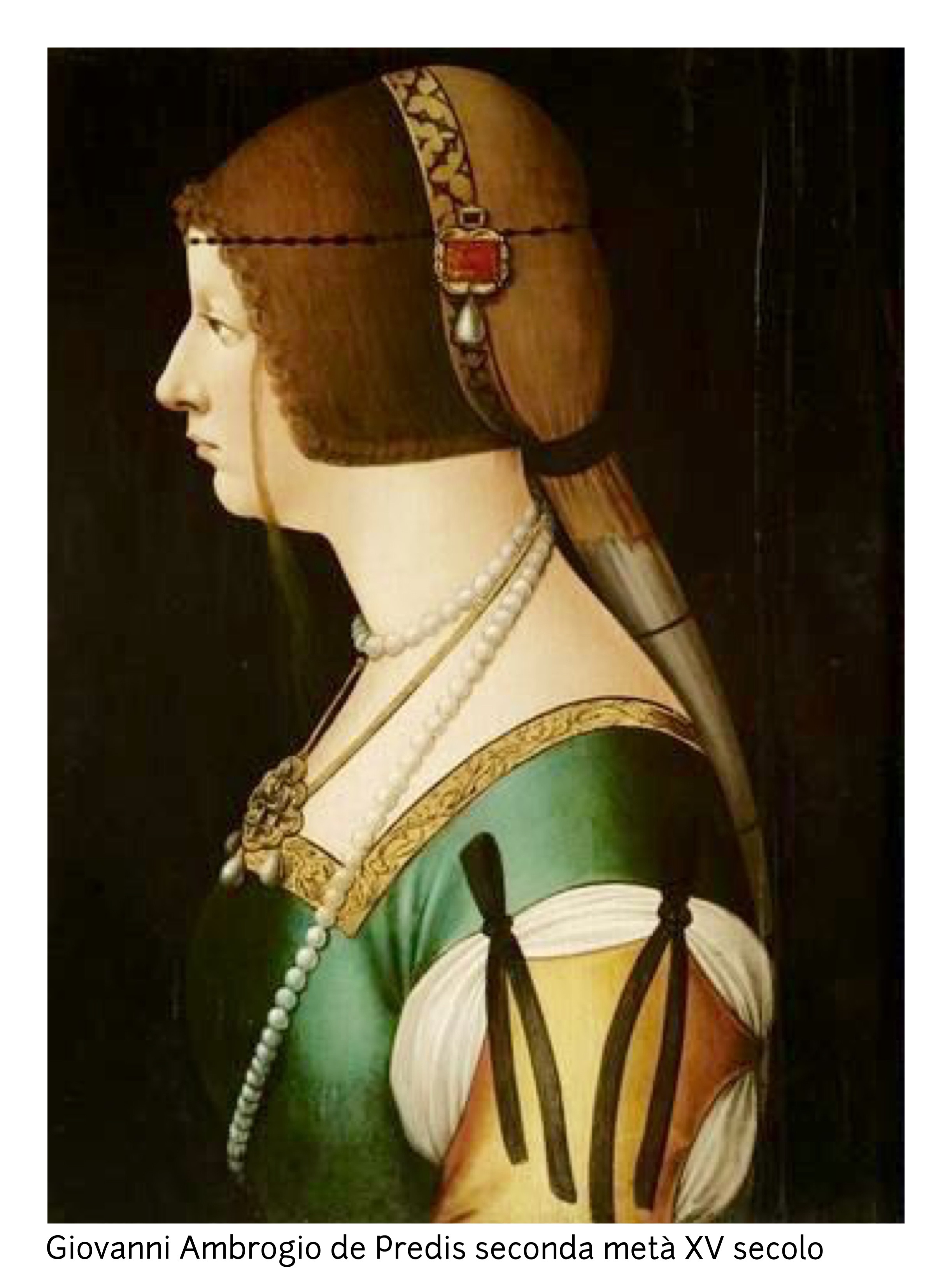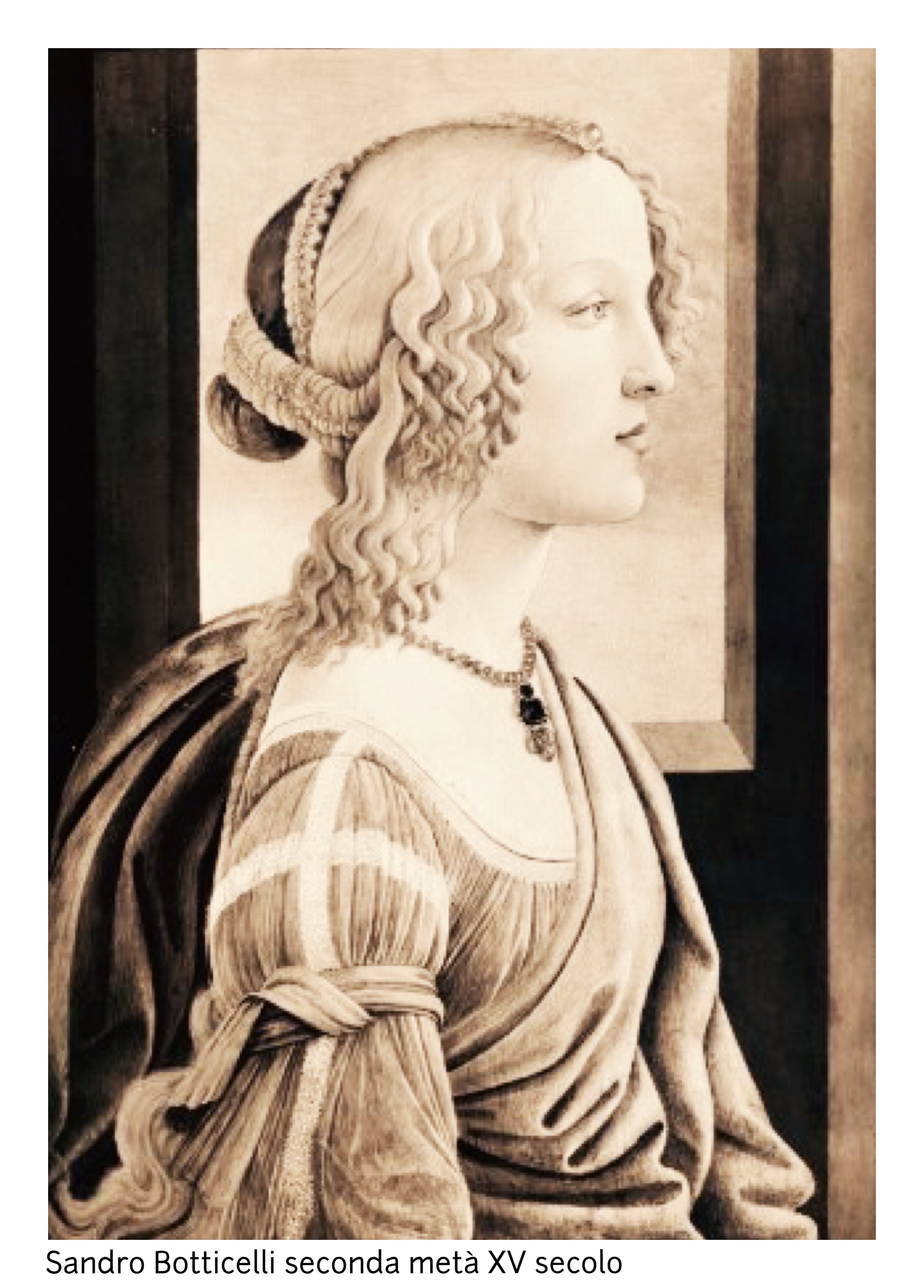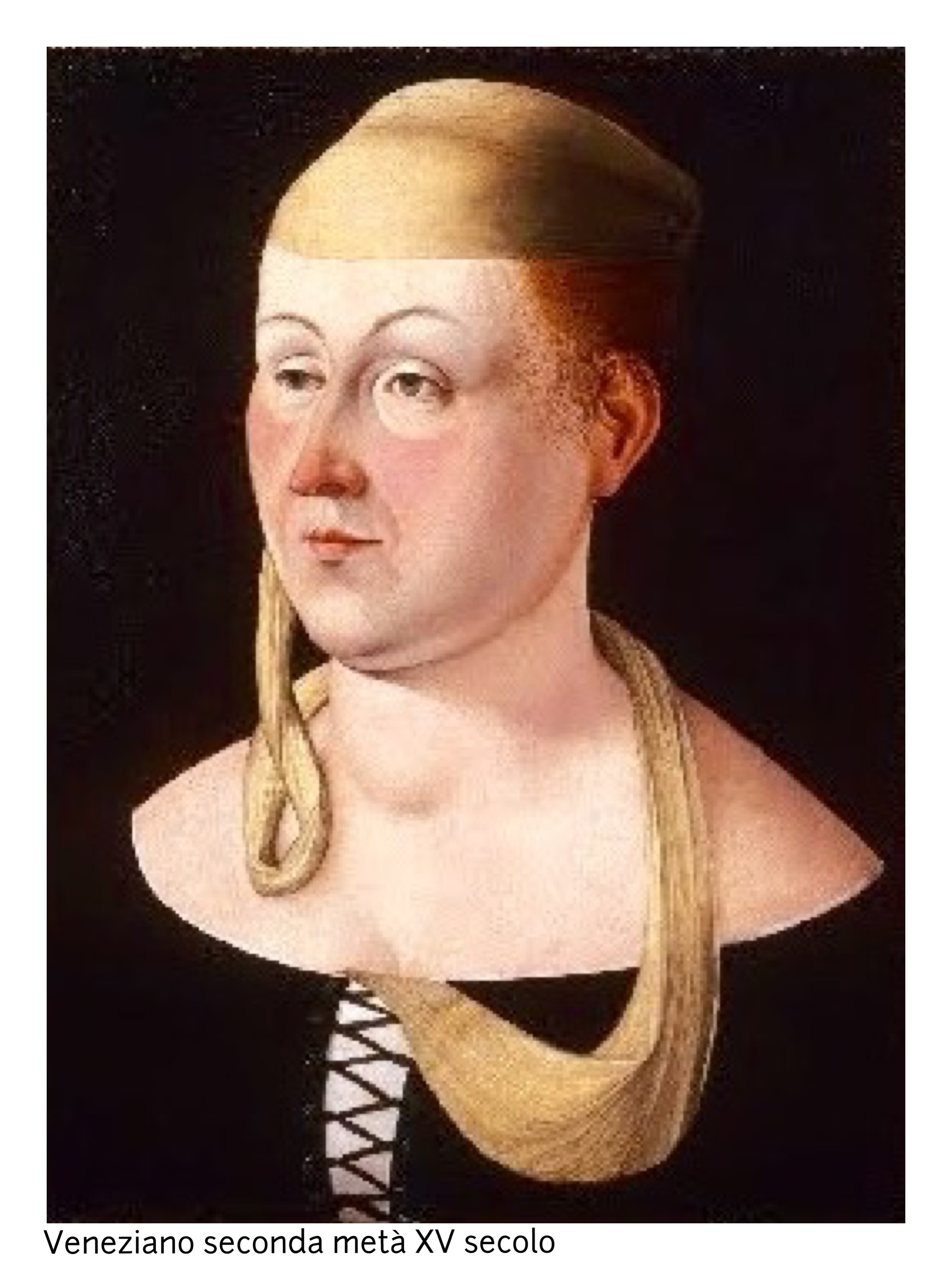 Con il 1400 sono apparse in Italia molte tipologie di acconciature ed ornamenti rendendo “i capelli” una vera e propria moda del periodo. Attraverso accessori (come piume e ricami, veli e nastri) e gioielli (come perle e pietre preziose, fermagli e oggetti di oreficeria) la testa diveniva emblema del proprio rango, del gusto e della sensibilità alla moda.