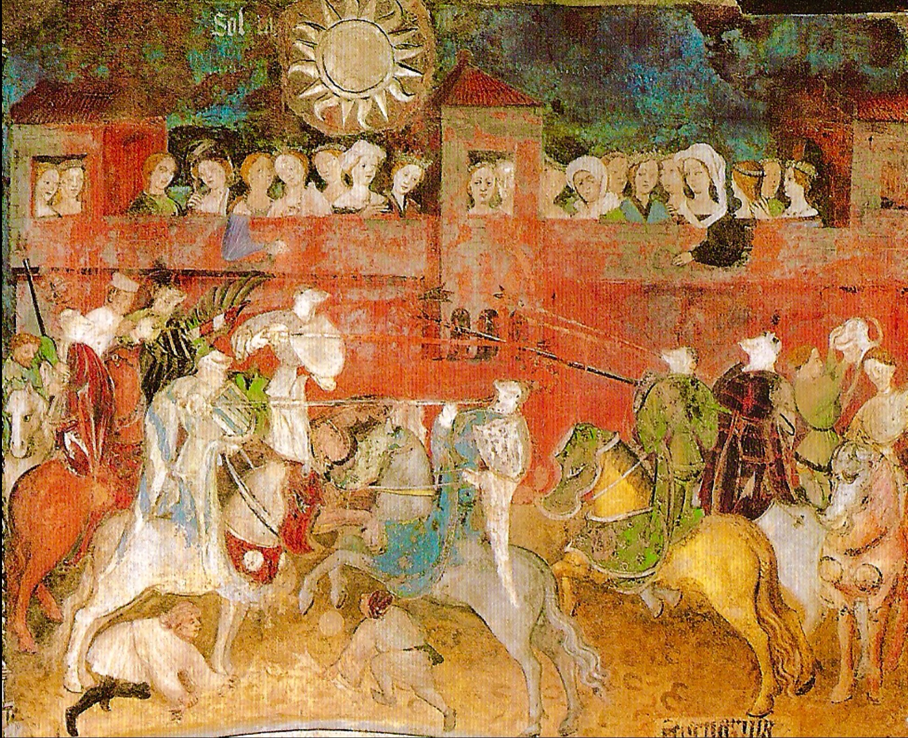 Coloro che “combattevano” in questi tornei cavallereschi, con il XV secolo esibivano armature lucenti con elementi decorativi per elmi (piume e stemmi) e per armature (trofei e sopravvesti), chi assisteva ostentava abiti ricchi ed eleganti in rappresentazione dell’appartenenza all’alto rango.