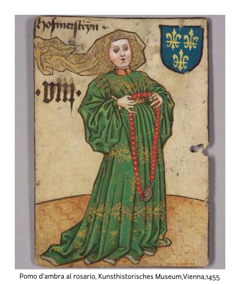 Tra il XIII e il XVI secolo il pomo d’ambra era indossato dalle classi agiate a scopo aromaterapeutico ed era anche considerato un vero e proprio cosmetico deodorante.