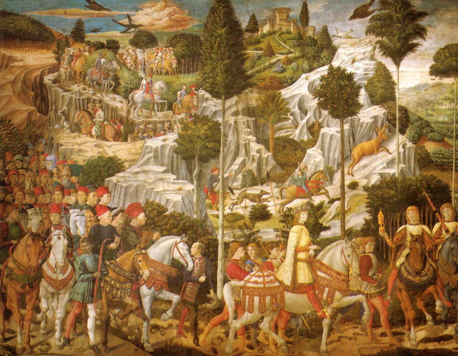 Nel XV secolo si passò anche alle maniche tubolari in “La leggenda della vera Croce – Il supplizio dell’ebreo” datato tra il 1452 e il 1459 di Piero della Francesca o nell’opera di Benozzo Gozzoli presso la Cappella dei magi nel Palazzo dei Medici con il fiabesco Viaggio dei Magi, su commissione di Piero de’ Medici nel 1459 o anche in “Il miracolo dell’ostia bruciata e il sanguinante” del 1467 di Paolo Uccello.