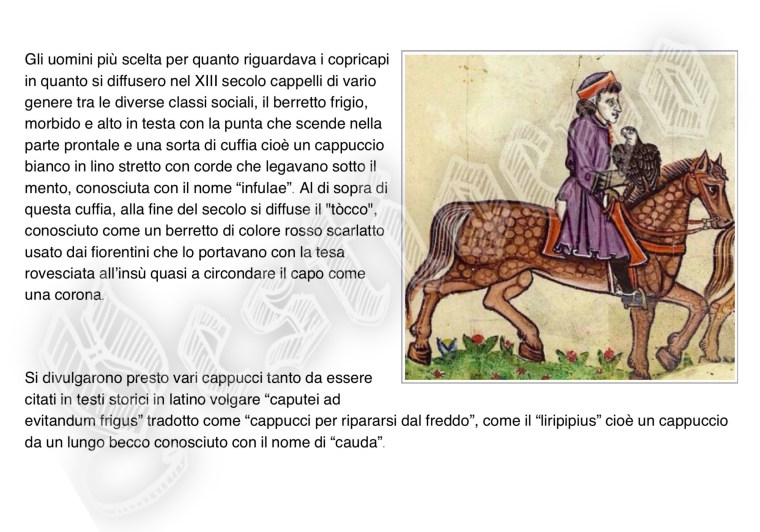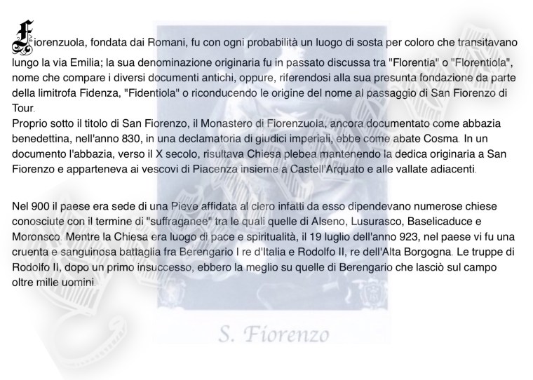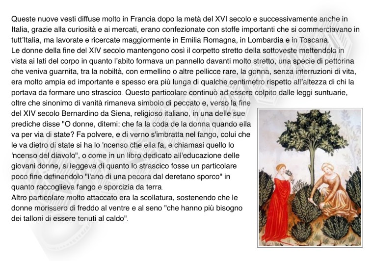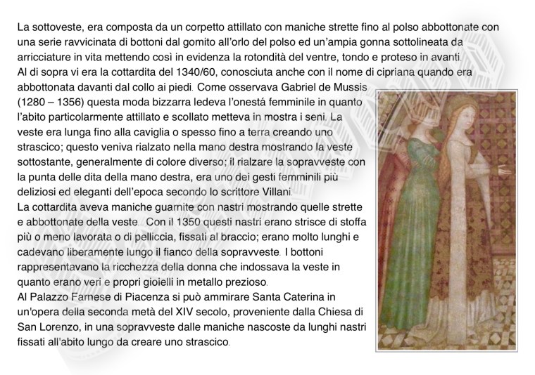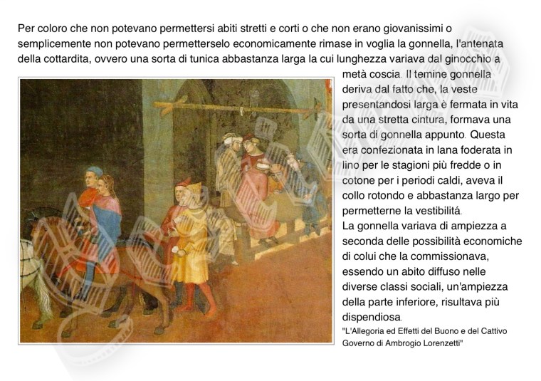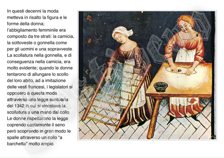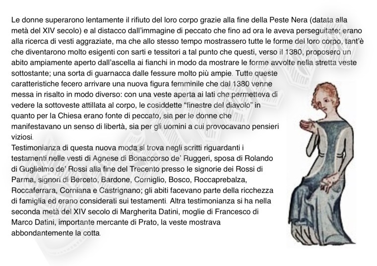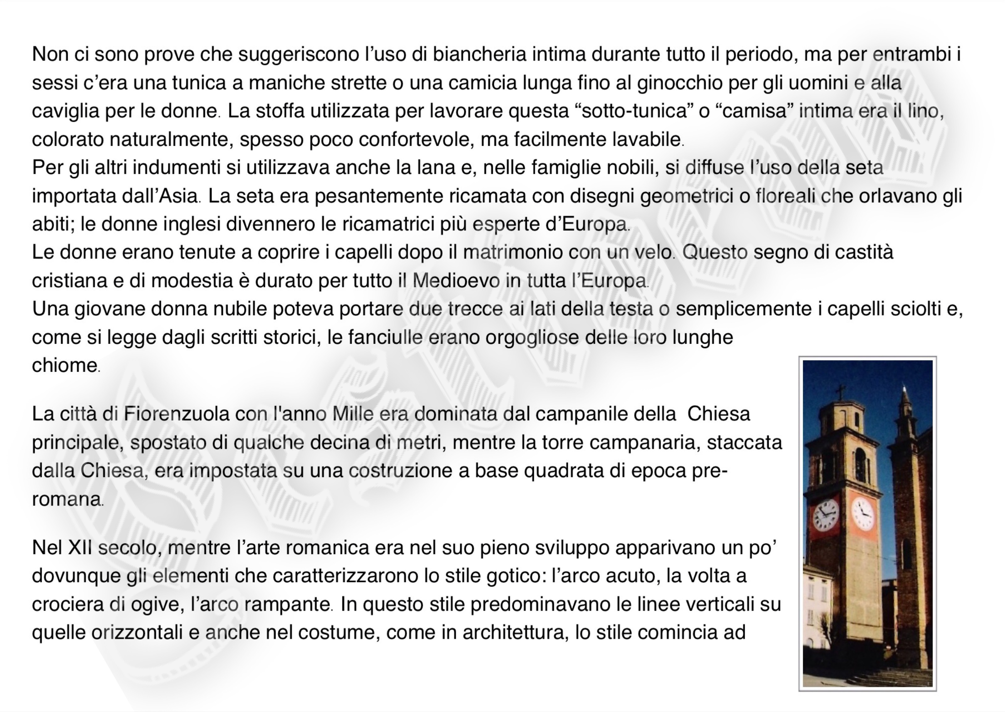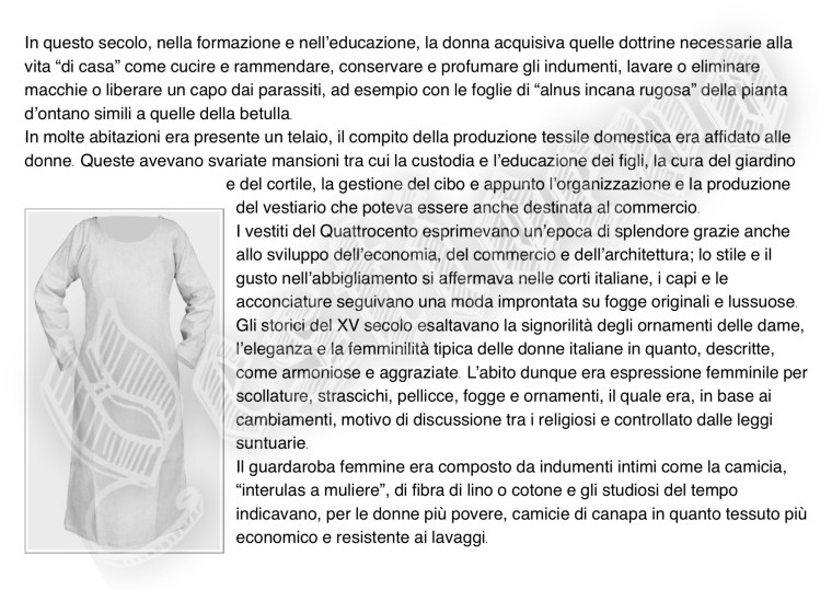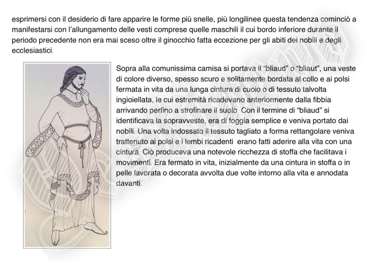 La storia di Fiorenzuola esposta attraverso i cambiamenti e le innovazioni stilistiche medievali, dalle tuniche, bliaut, alle giornee, pellande e farsetti; dalla Via Francigena al Rinascimento con oggetti, abiti, informazioni e curiosità.