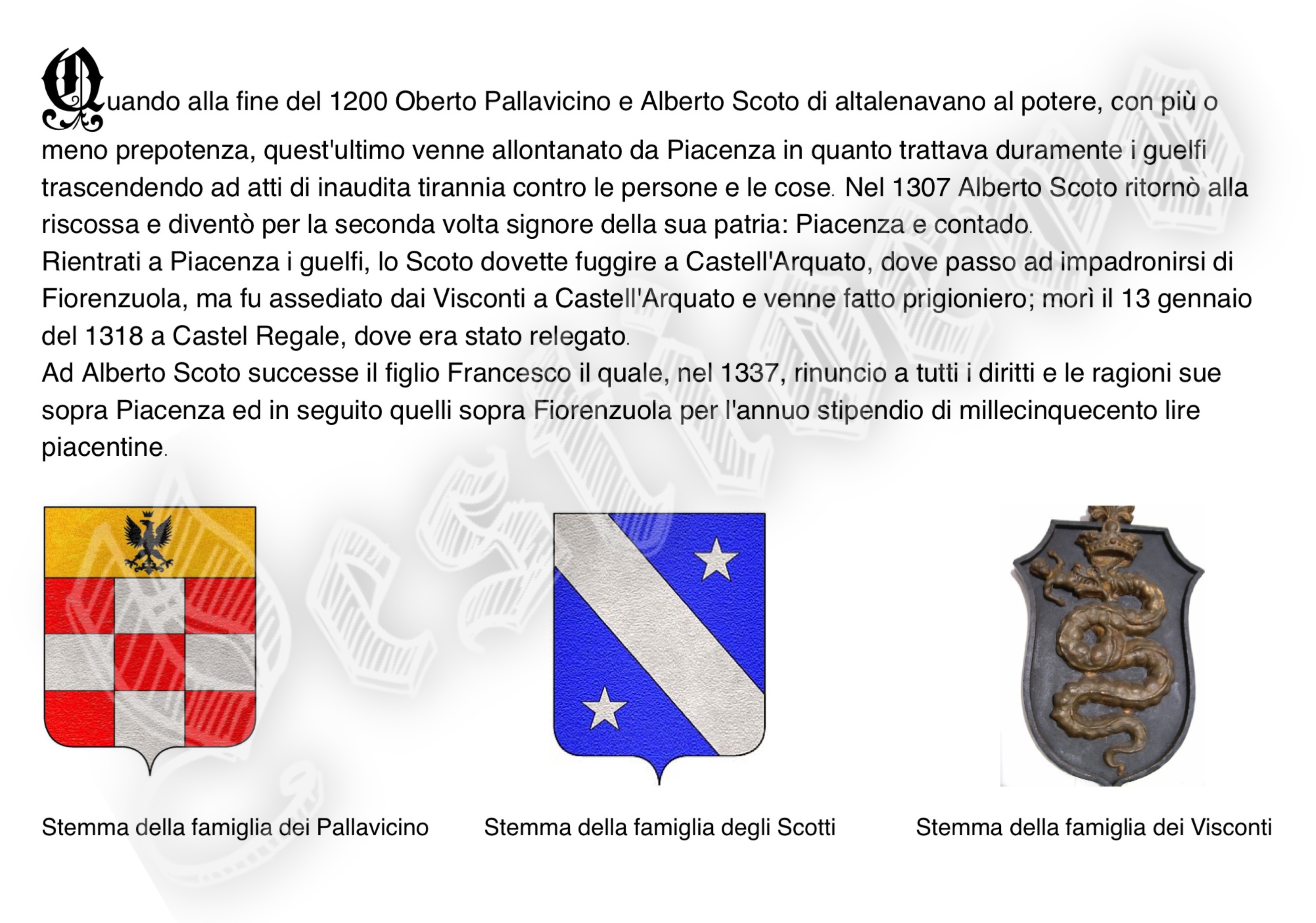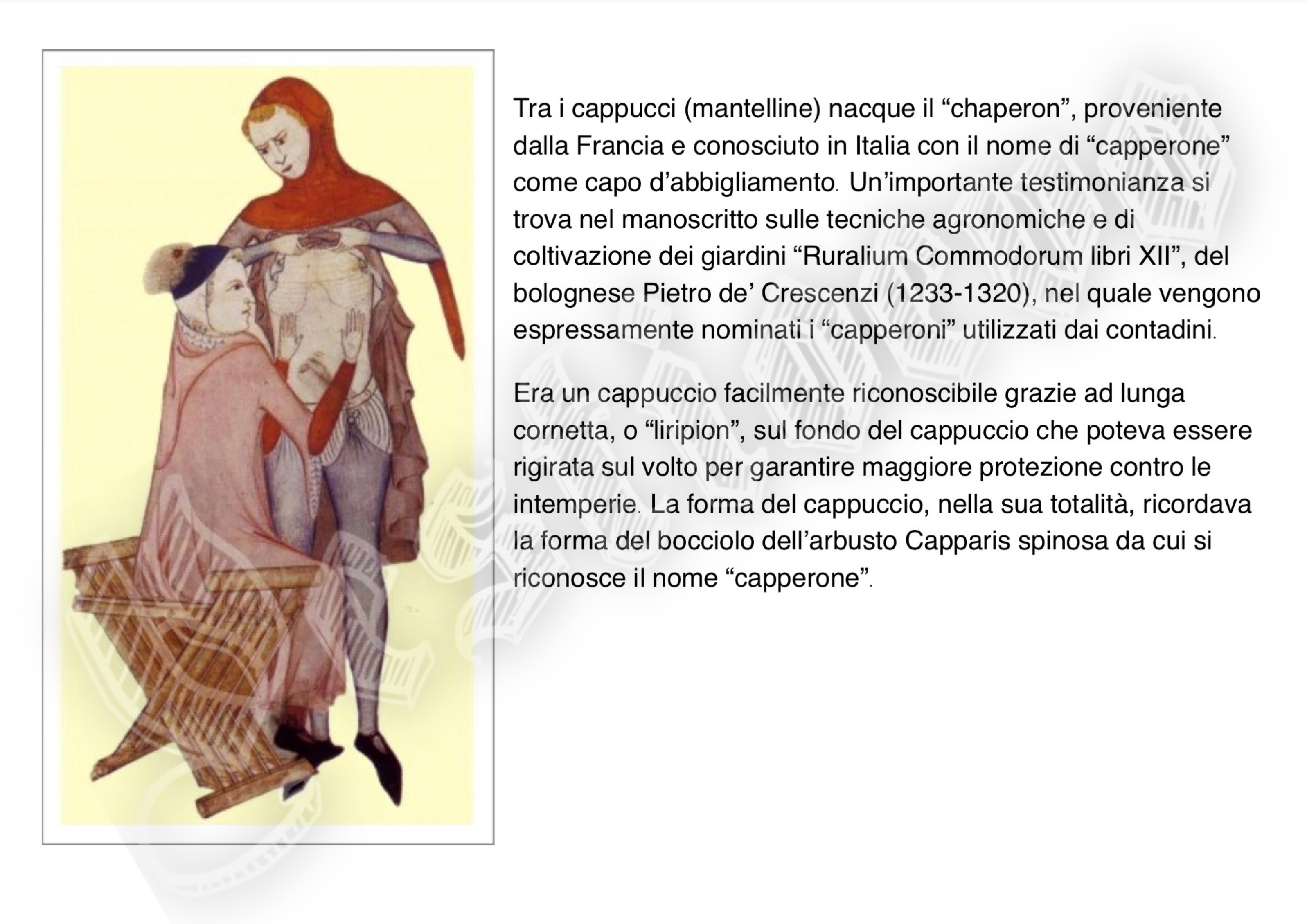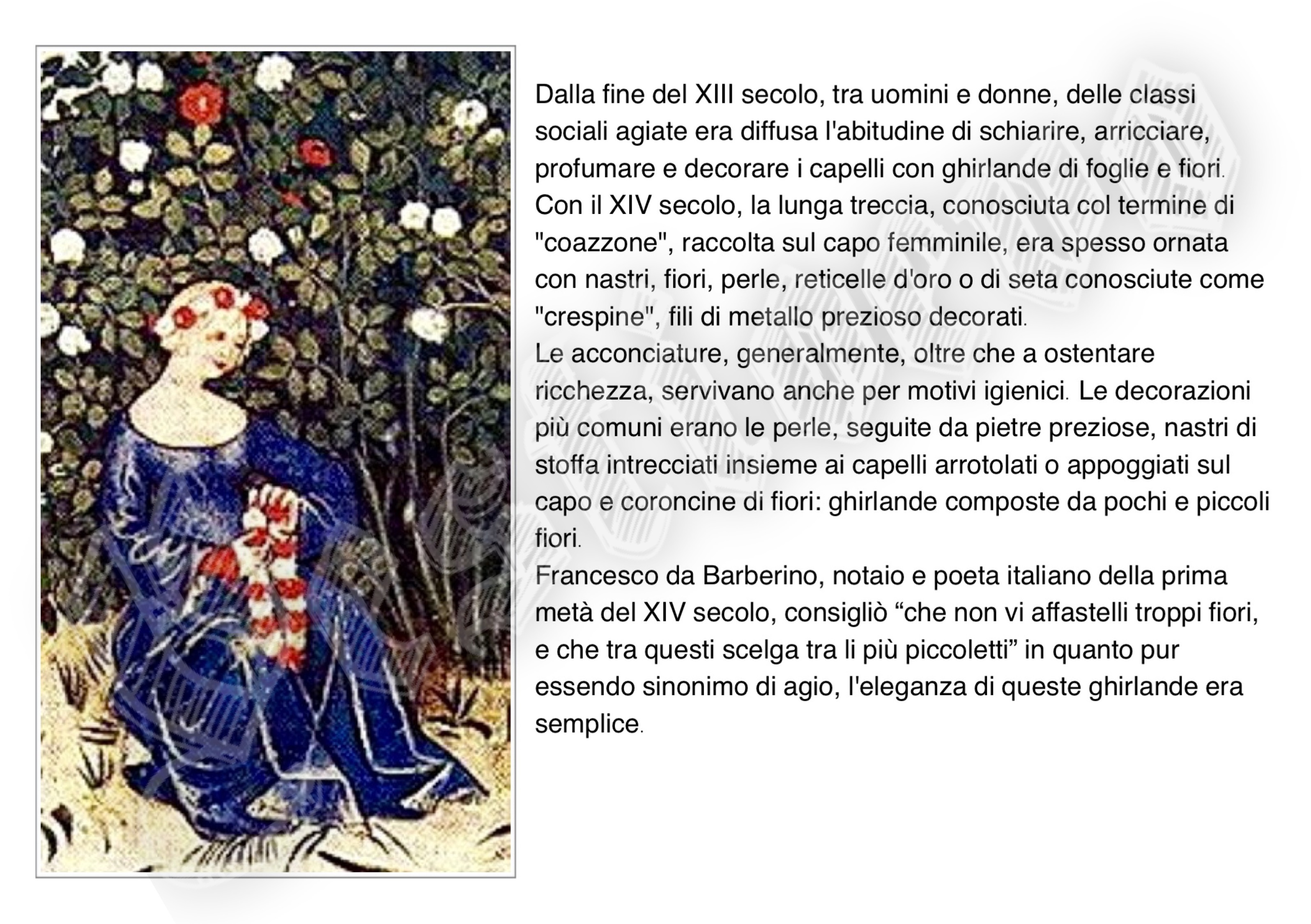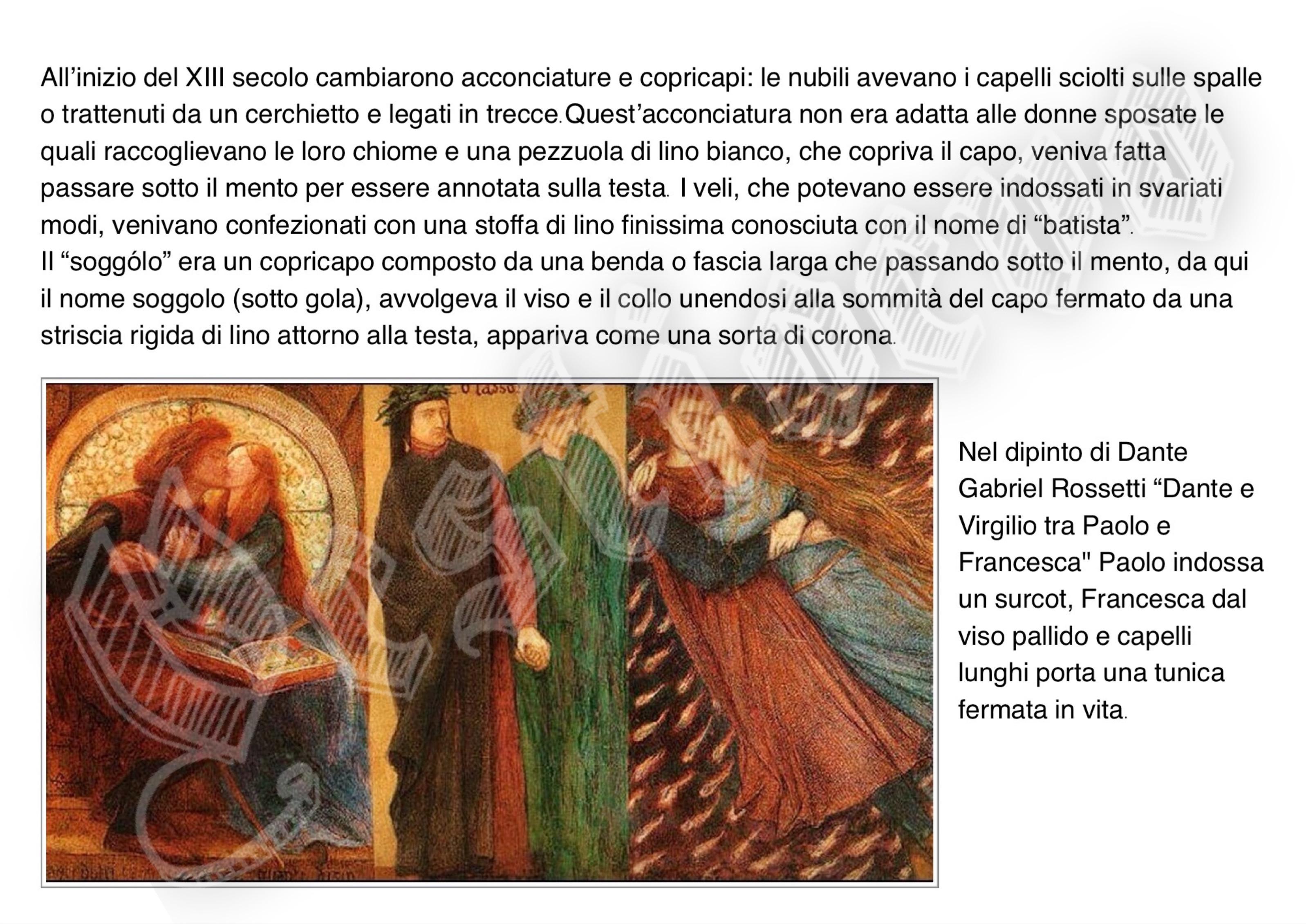 La storia di Fiorenzuola esposta attraverso i cambiamenti e le innovazioni stilistiche medievali, dalle tuniche, bliaut, alle giornee, pellande e farsetti; dalla Via Francigena al Rinascimento con oggetti, abiti, informazioni e curiosità.