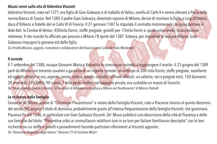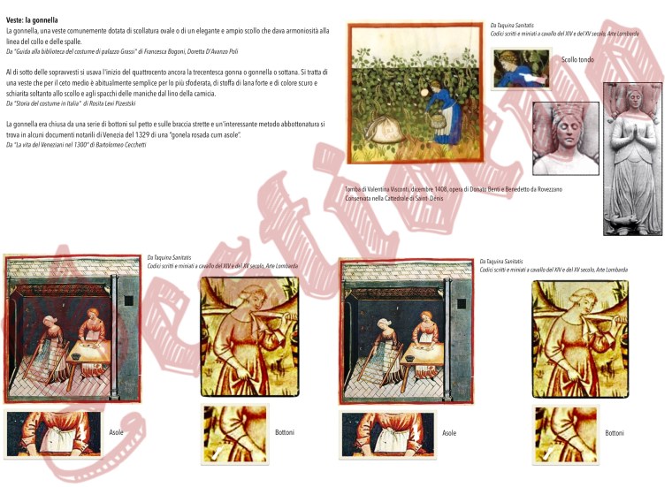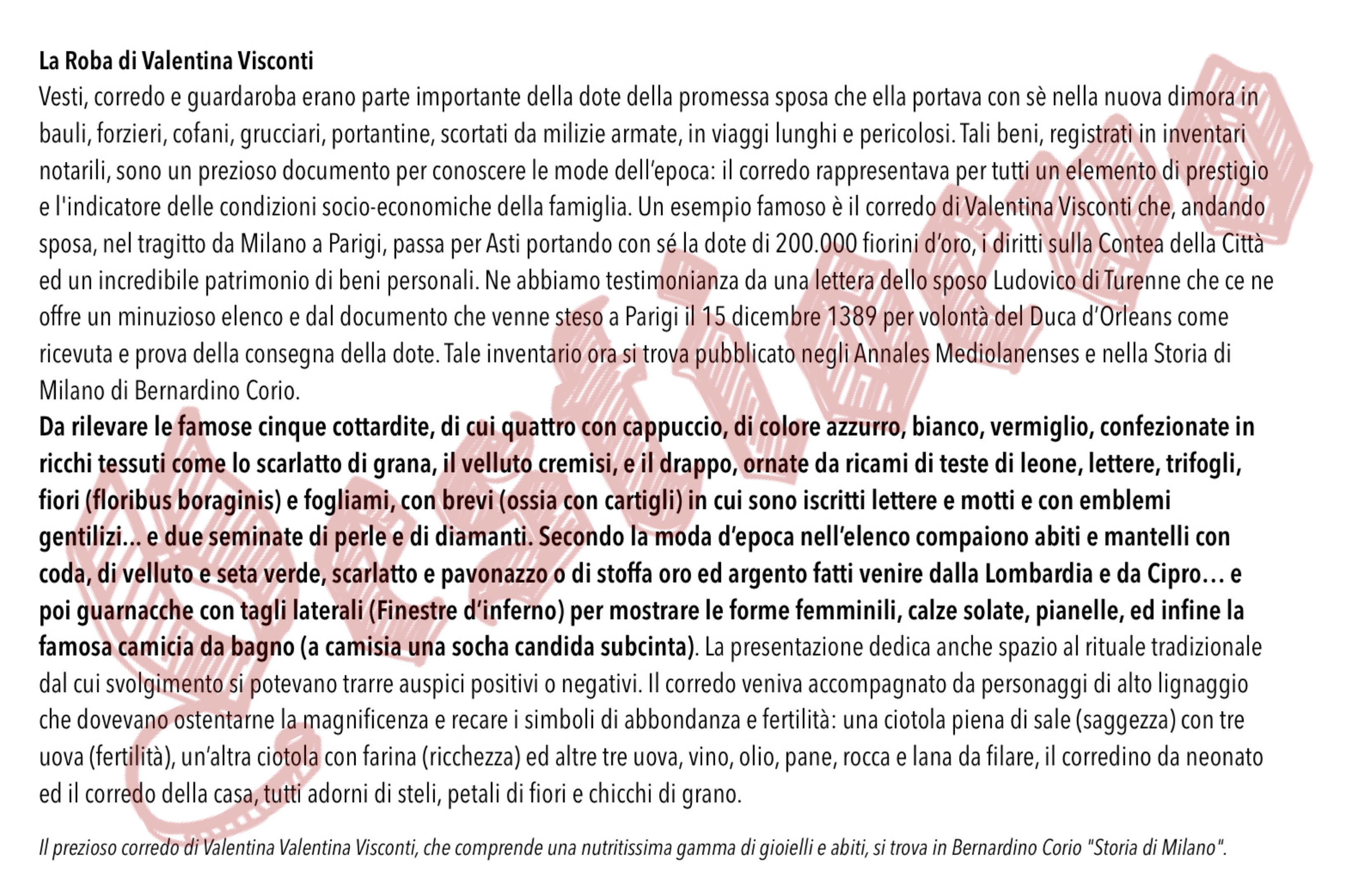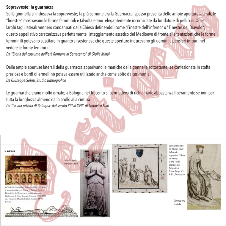 Parlando di sopravvesti, ci si sofferma su una moda francese: la guarnacca con le grandi Aperture laterale indossata da Valentina Visconti.