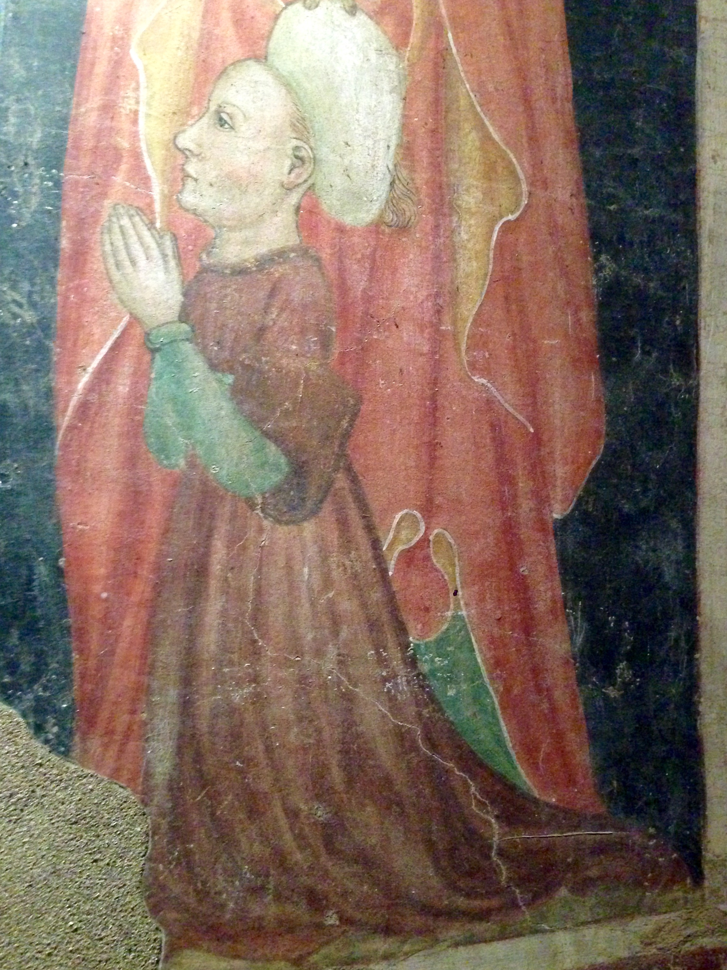 Di questo periodo appunto si trova, attribuito ad un pittore settentrionale, la “Madonna in trono con il Bambino è una devota”, un affresco staccato e riportato su telaio tamburato proveniente dal Chiostro della Sagra.
