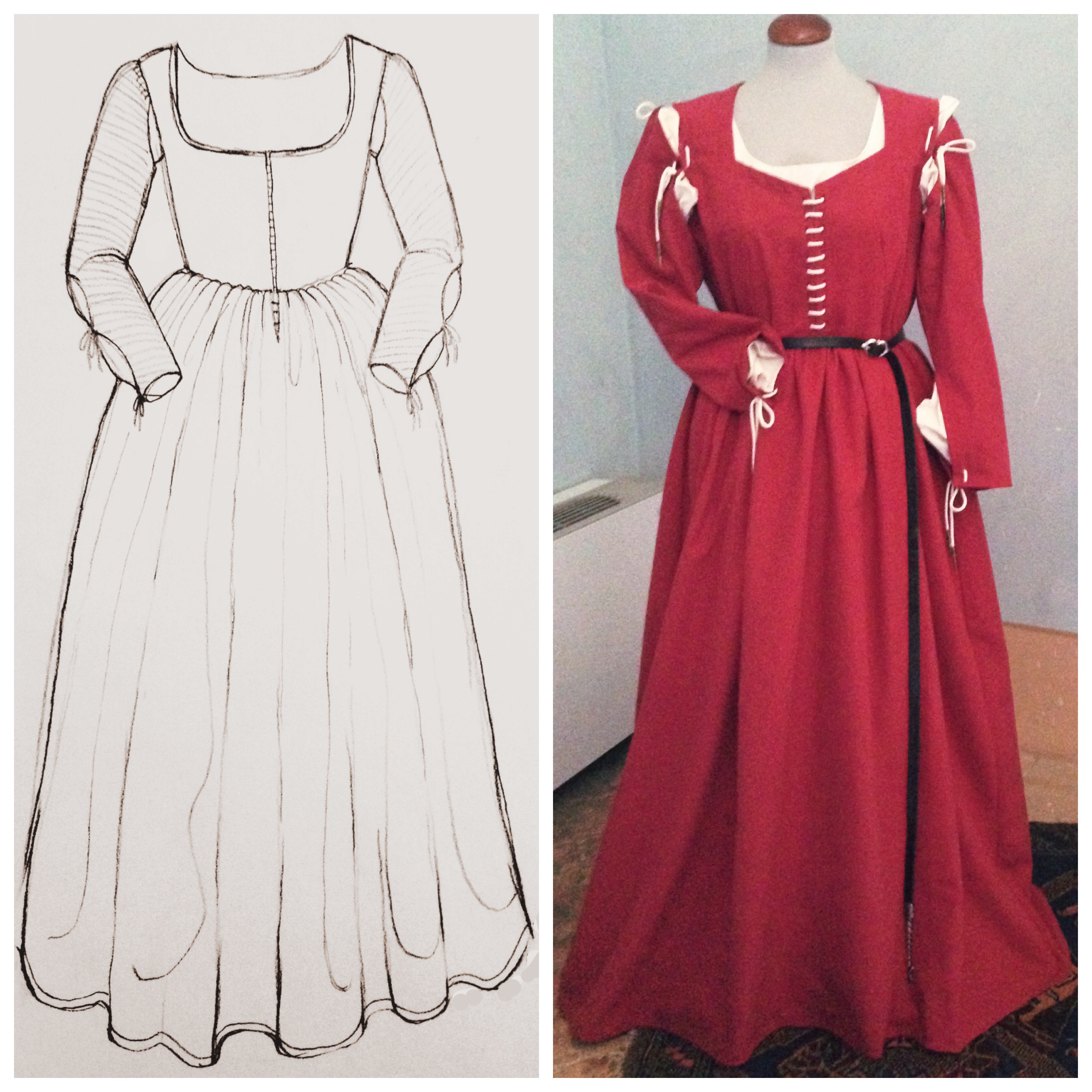 Durante la seconda metà del XV secolo la veste femminile aveva la vita stretta che creava un’elegante gioco tra un corpetto stretto, che evidenzia le forme, un’ampia gonna e scollatura semicircolare.