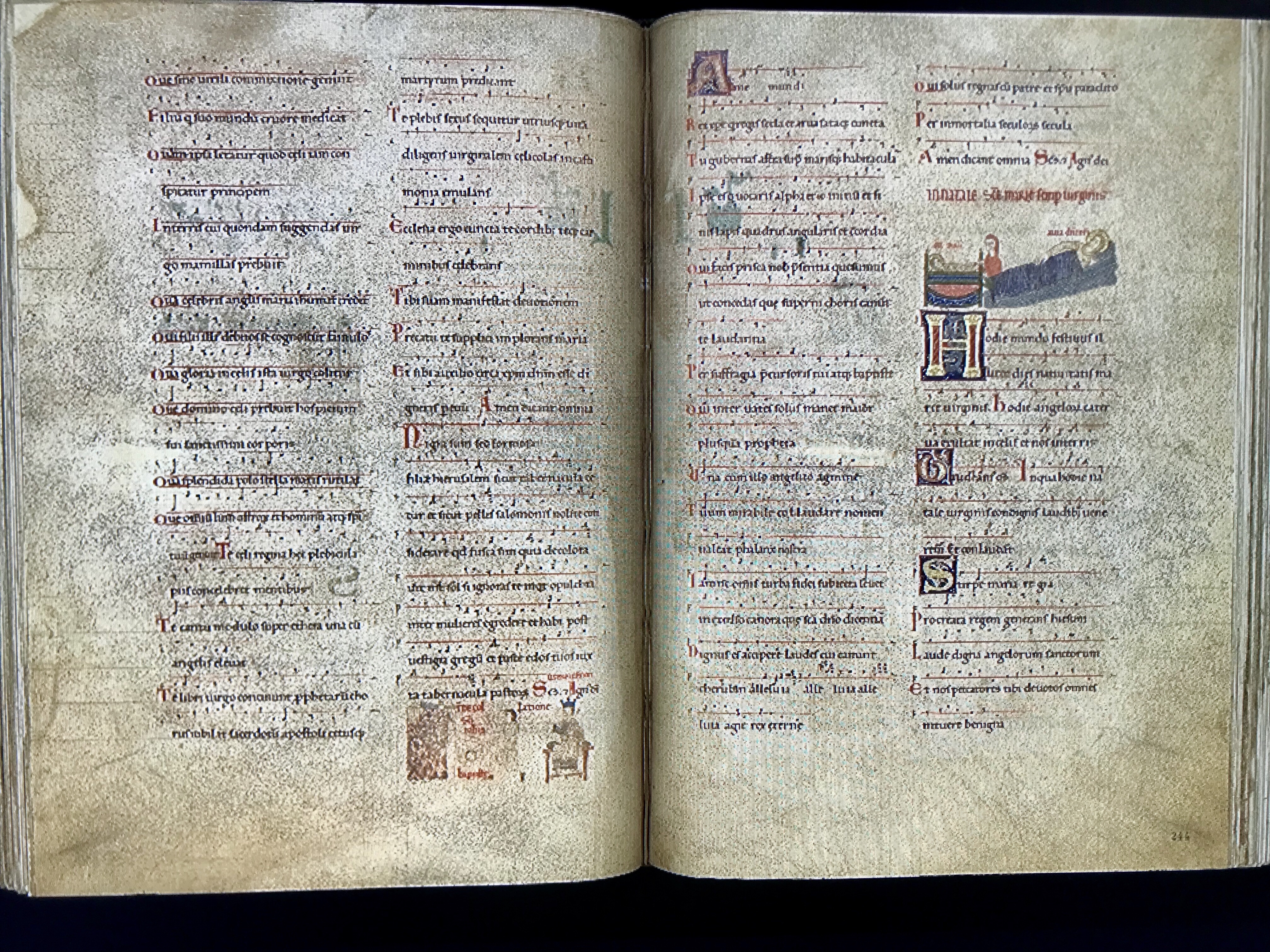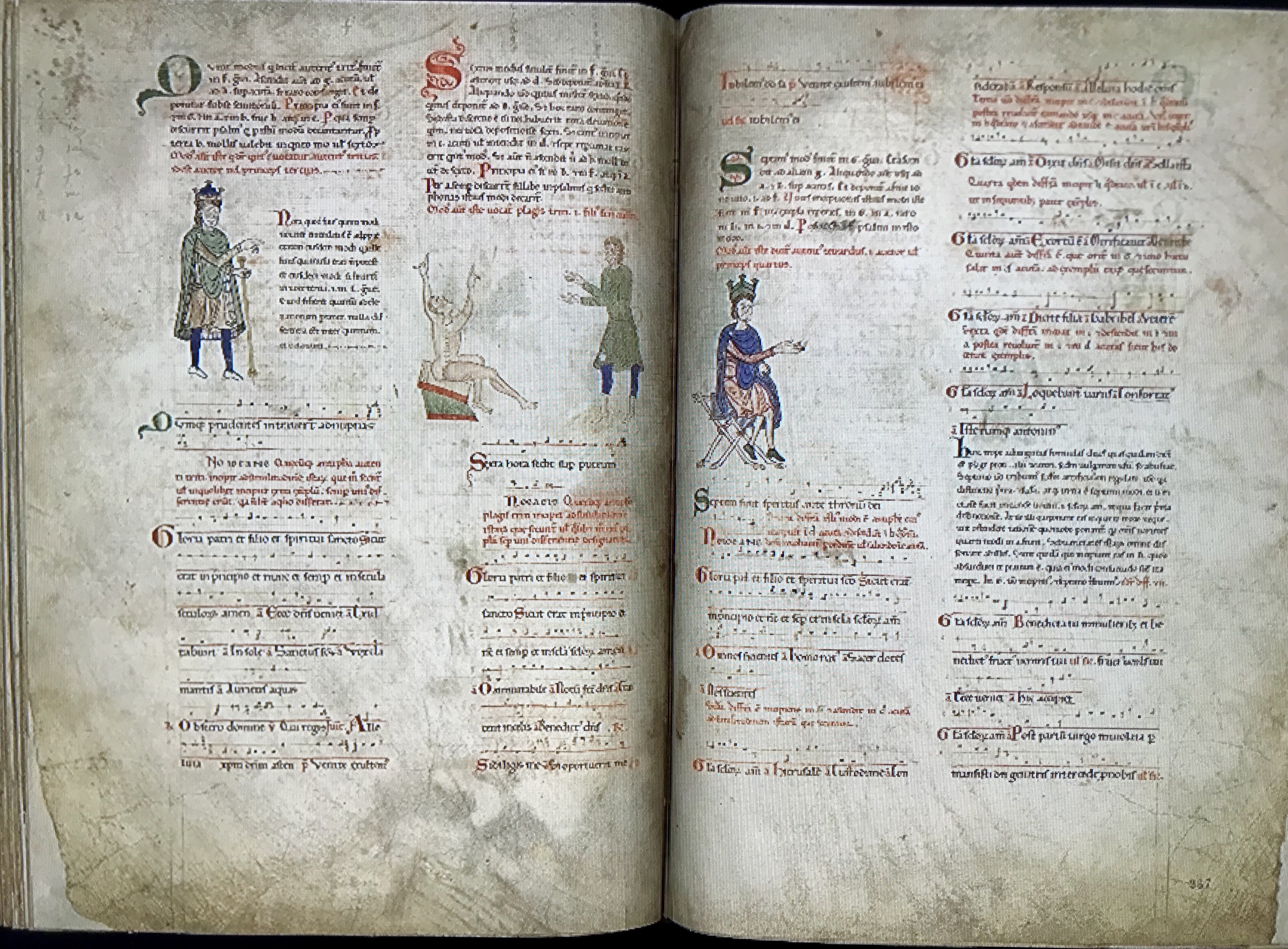 Segue poi il “Salterio”, libro dei salmi, che termina con litanie dei santi, in cui figurano anche i patroni di Piacenza e delle varie chiese urbane.