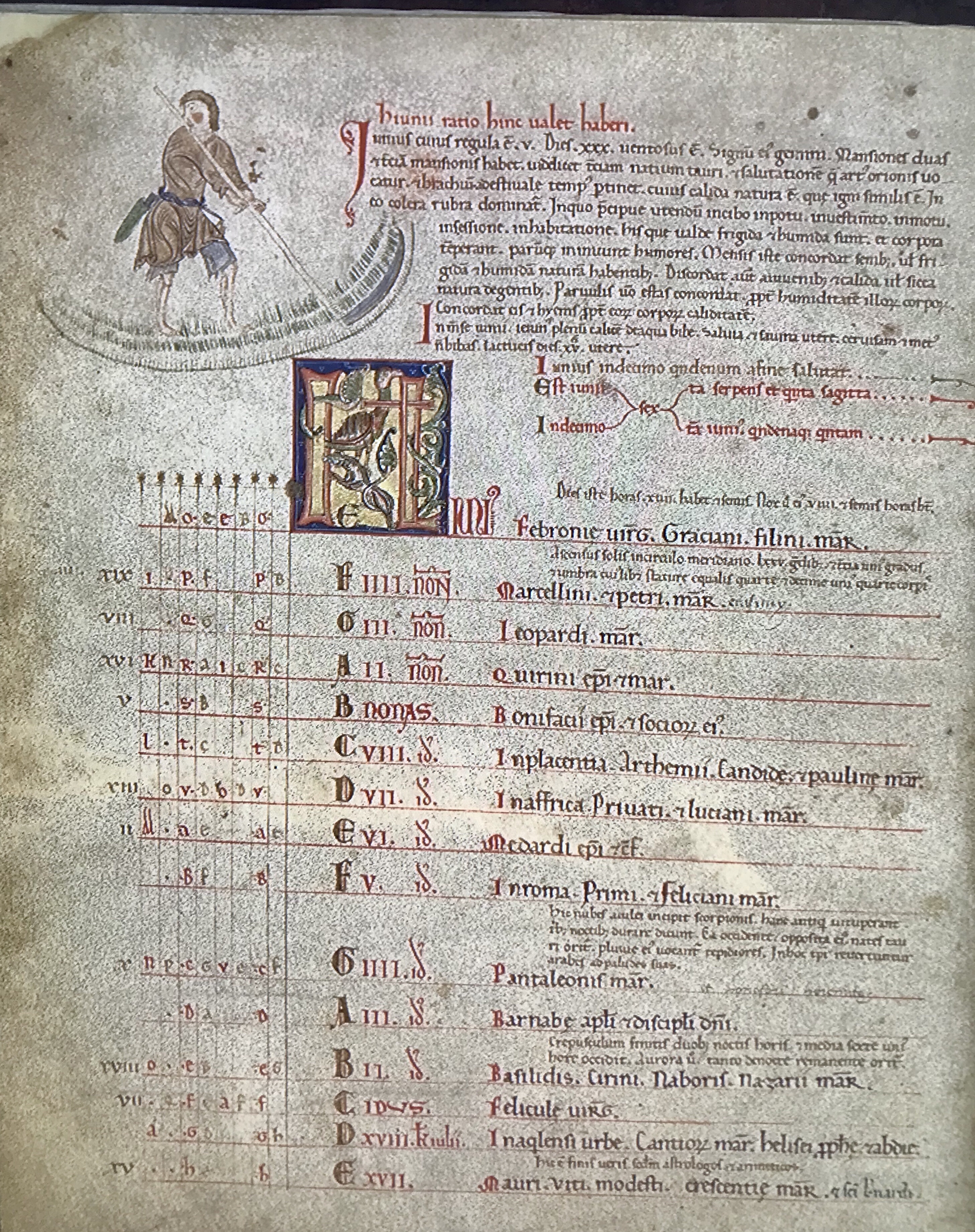 Al suo inizio è posto un calendario ecclesiastico che elenca nozioni di astrologia, astronomia, medicina, agronomia e merceologia.