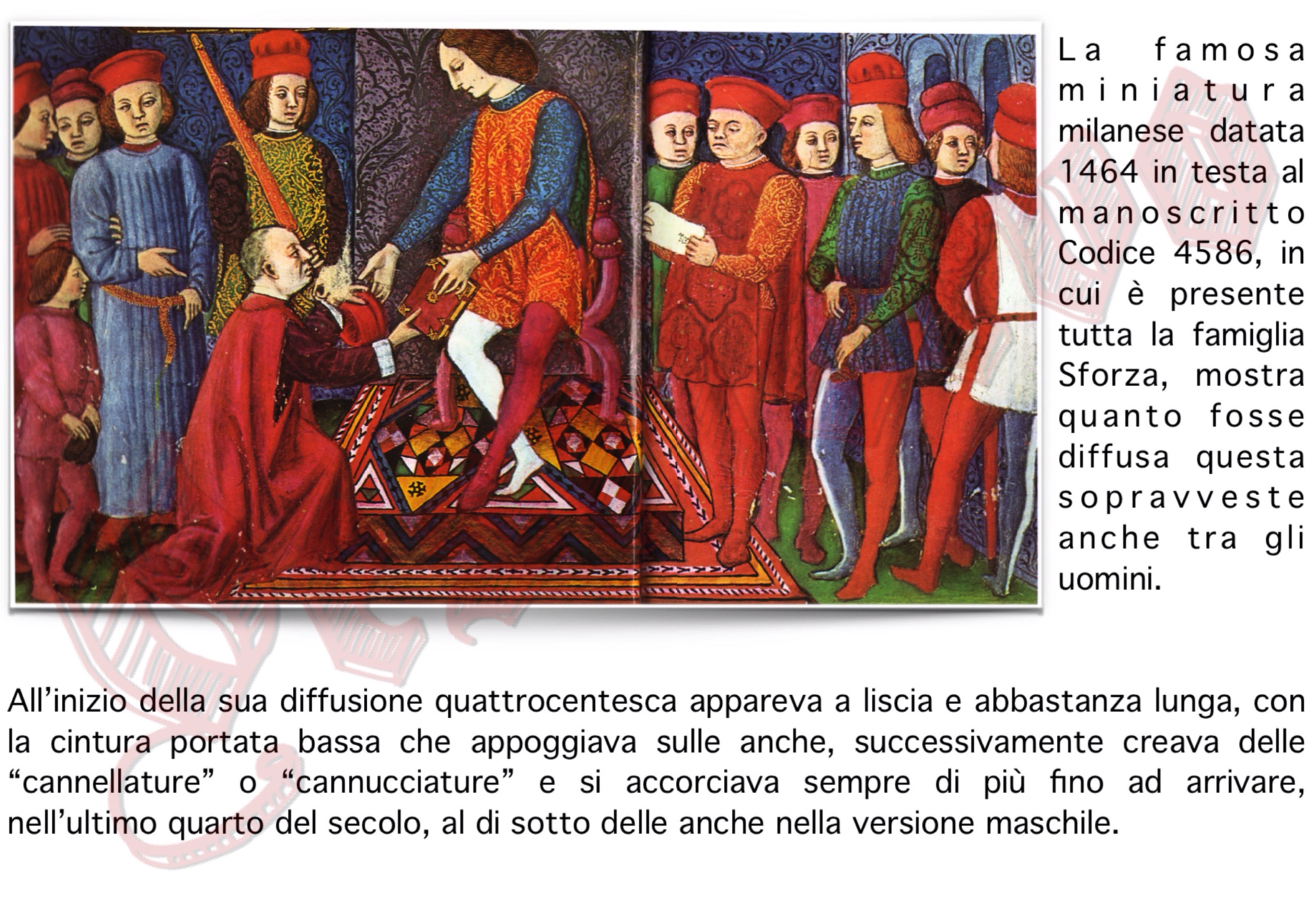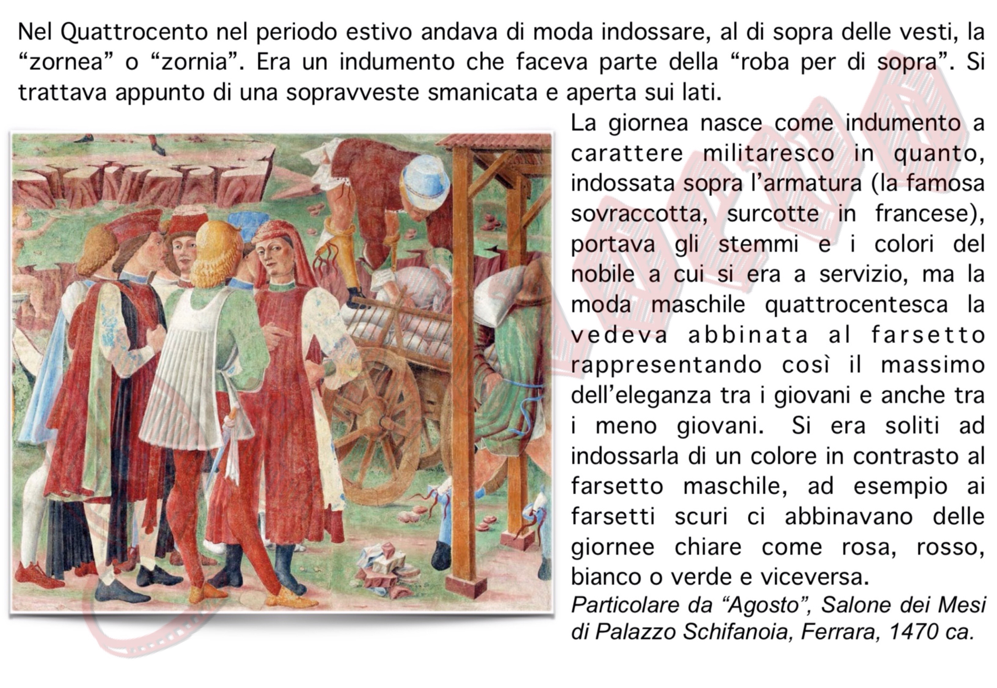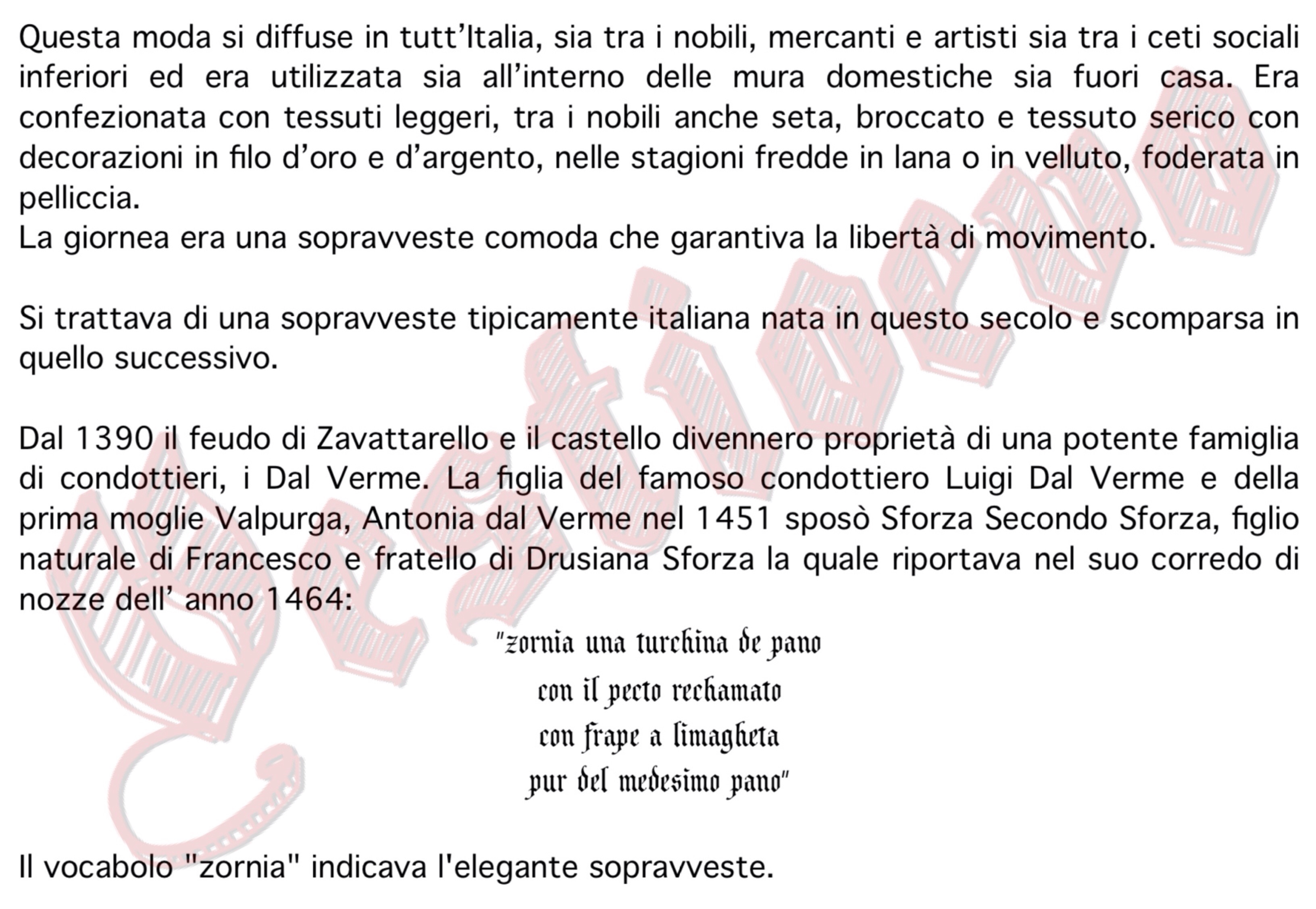 La mostra, allestita presso il Castello Dal Verme di Zavattarello (PV), feudo della famiglia Dal Verme, è stata dedicata alla giornea maschile e femminile: sopravveste tipica della seconda metà del Quattrocento italiano.