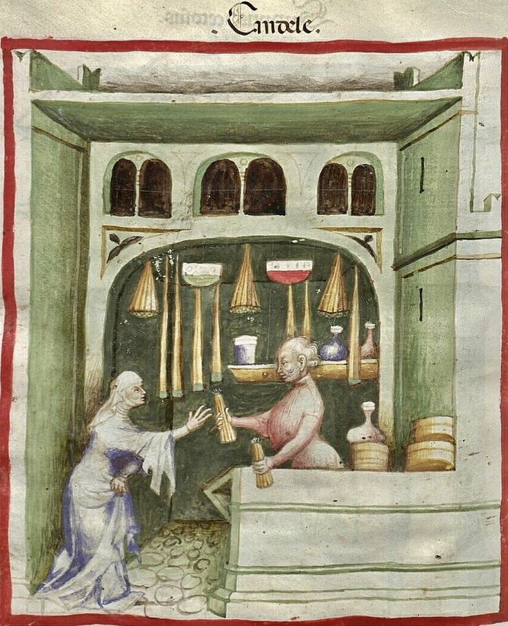 Tacuinum Sanitatis, XIV secolo. Candele. Folio 95v.
